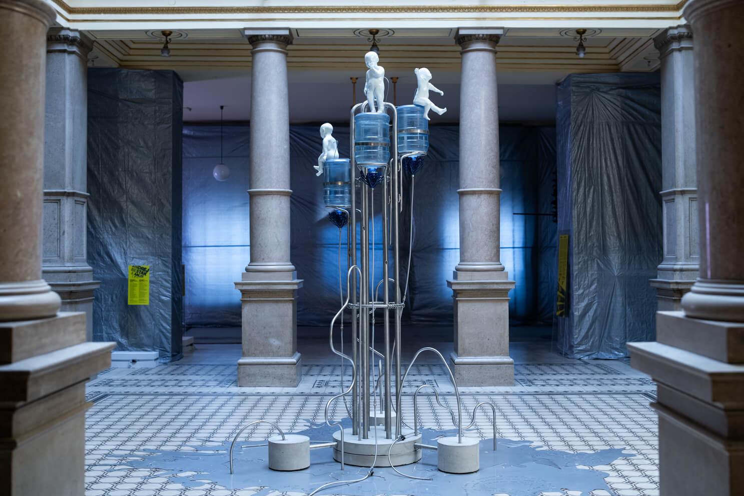 Beginning with the year 2000, the moment of the much-feared digital collapse, the curatorial framework by KUĆĆA (Jurica Mlinarec, Klara Petrović, Luja Šimunović) investigates our contemporary obsession with risk management, optimization, and control. But it does so through the aesthetics of play, where the stakes are always unclear, and ambiguity is the only rule. The exhibition gathers over 25 artworks, performances, lectures, and public interventions. Yet what defines this 60th Zagreb Salon most powerfully is its decentralization: more than twenty venues scattered across the city, from the architectural grandeur of the Oktogon to the interiors of public trams, from monumental architectural wrappings to nearly invisible gestures woven into the urban fabric. The Salon is not an event to attend, it’s a map to move through. You meander, you detour, you double back. Like a video game, but with your real body.