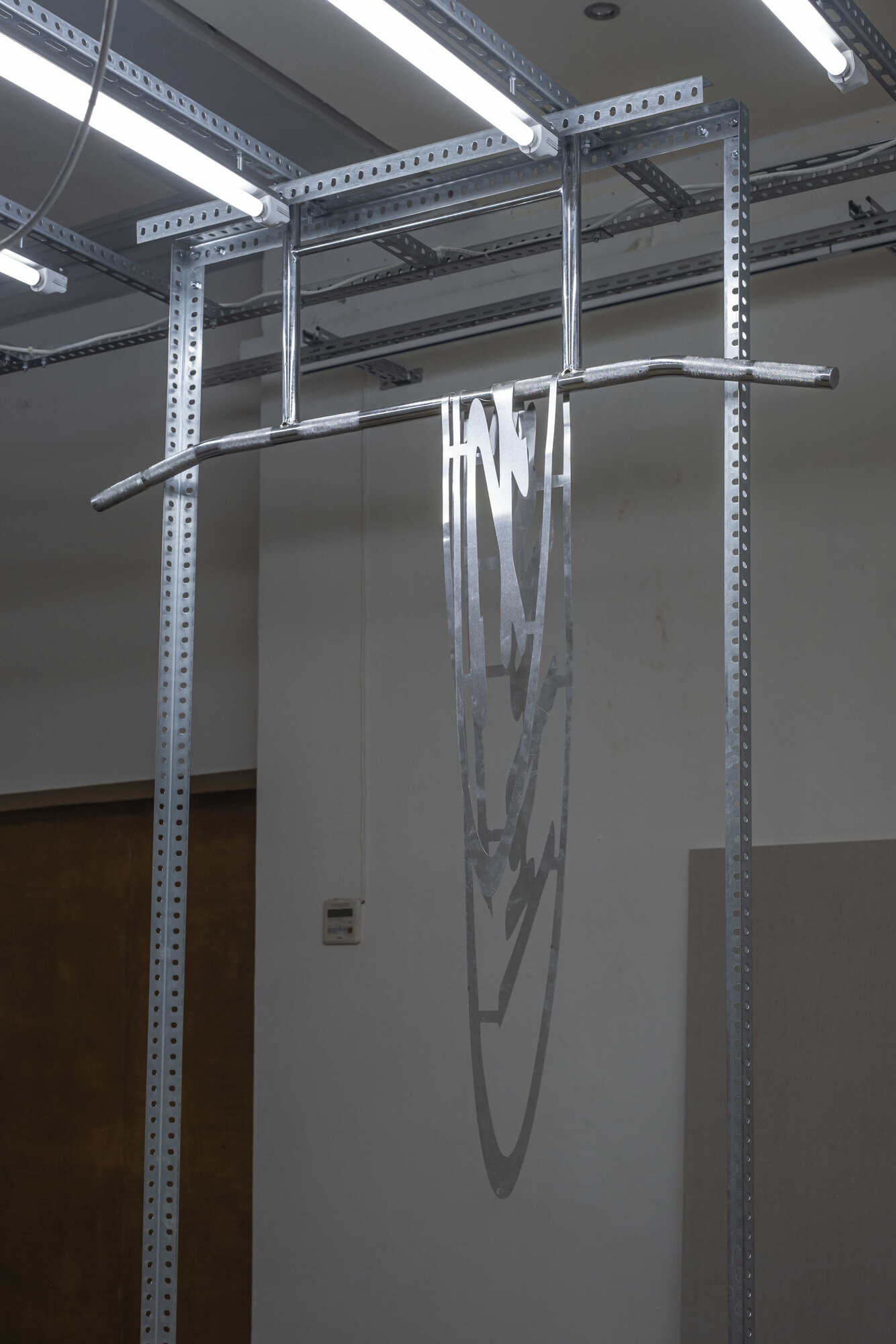 By obscuring the gallery’s characteristic columns, the installation evokes an entropic state, erasing cultural heritage and severing connections to a past distinct from the present. It also prompts reflection on the destruction of cultural heritage in favour of profit-driven developments, raising the question of what cultural legacy late-stage capitalism will leave behind. The space, neither fully domestic nor public, highlights the complex interplay between personal and collective environments, revealing how our urban surroundings and private lives are deeply interconnected.