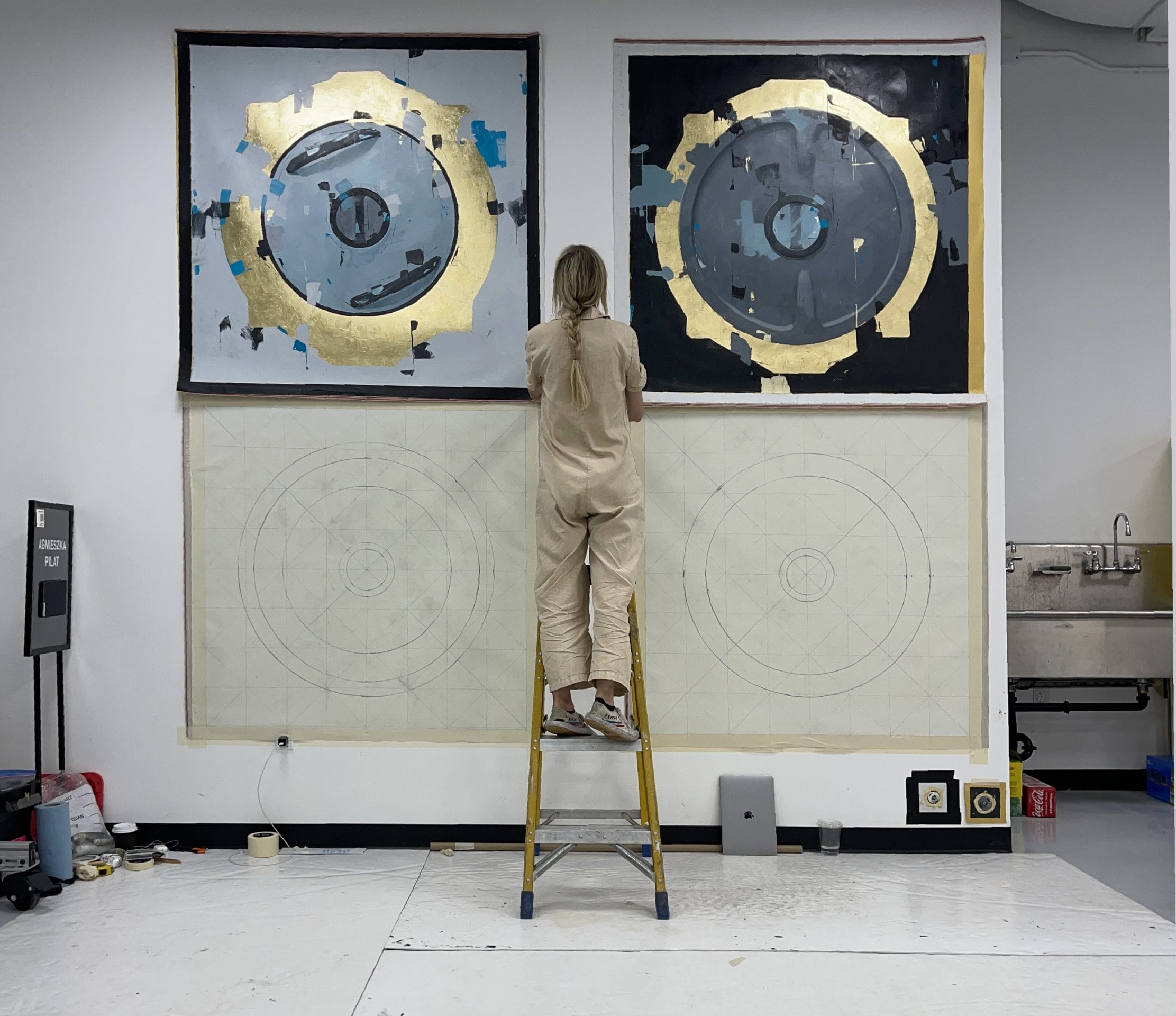 At SpaceX, there was another shift in my artistic approach. I began to perceive a divine nature within technology, and this led me to use colors, media, and iconographies inspired by religious art to depict these new modern icons. Specifically, I incorporated gold leaf as a direct visual reference to Christian iconography. Because space exploration involves looking up into the sky, I saw a parallel to religion, which became quite obvious to me.