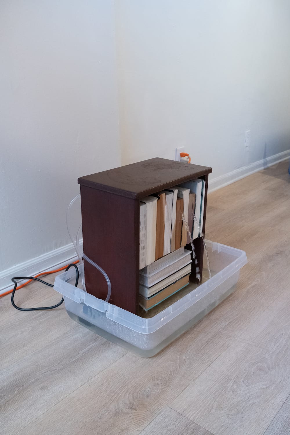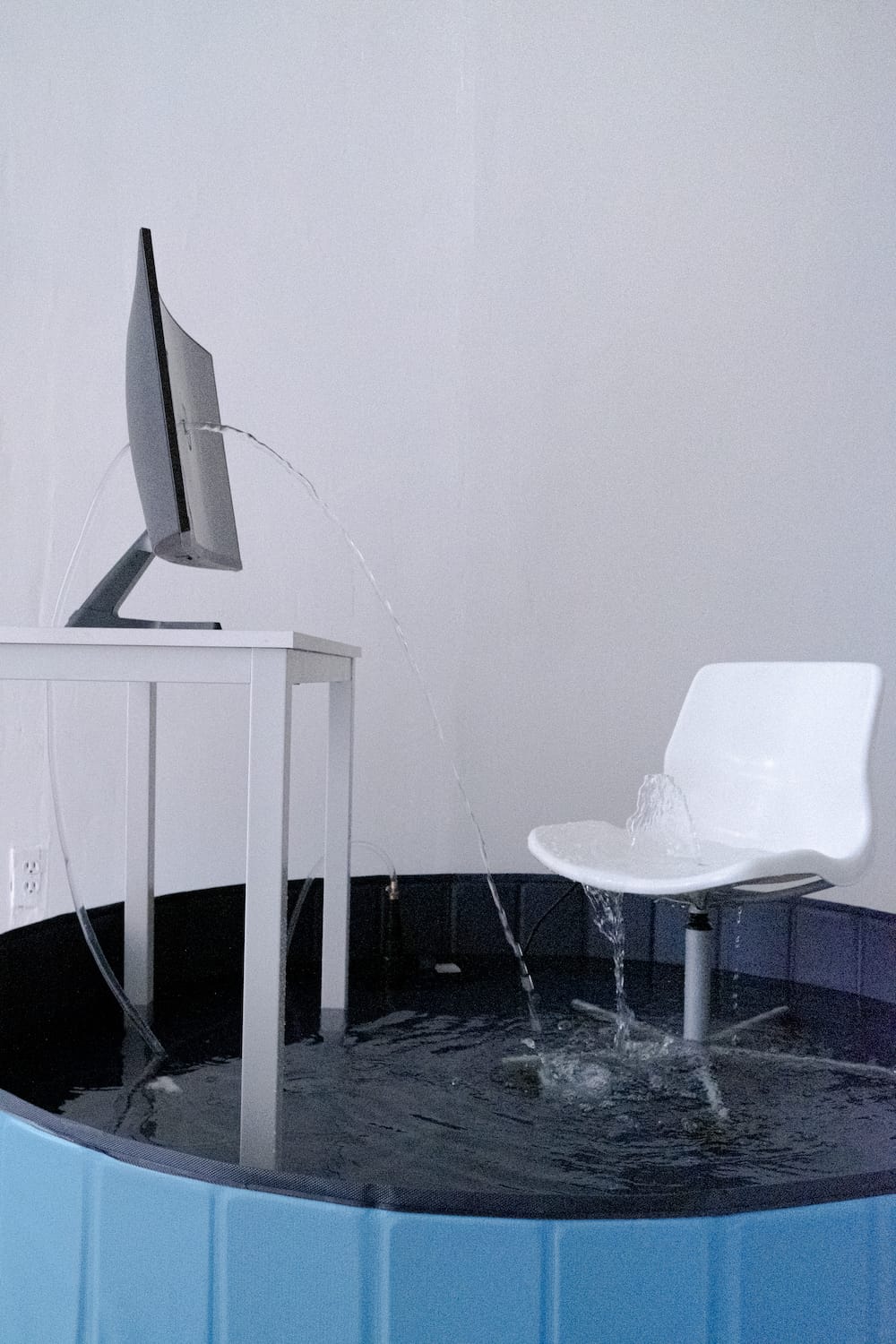 “It’s hot out, burning, like a sauna, tempted to say, like hell. We stroll, on the frying pavement, my sandals are melting, my forehead, dripping with sweat. Here we are, in the gallery, in the museum, cooled and aware. We traverse, Little Europe, cosplaying, eating olives at Le Dive, without stones, as if, the stones would weigh us down, like an anchor that drags our corpus into the abyss and darkness of the sea. We, actors in this flowing city, like a wave we ride from shore to shore. Always online, connected and aware, on time, always late for dinner, always in time for cigarettes. (…) We stay connected, always, you and me, in this tiny world. High above the waters, cooked and ready to unfold the discourse, see the world, unmask it and turn every stone. Embracing the cringe, not backing down, melting, being water, and resisting authorities. Back to school, bodies of water, peeing in the river, flowing down the Limmat with my clothes in a wet bag, on my way to work, no work, no work out; just being water. Still or sparkling, in and out, bottled and always on the go. Wireless, always hooked up, paired and ready to blow up, go wherever, always charged, never silent, always connected, always tuned in.” Theodor Nymark (2024)