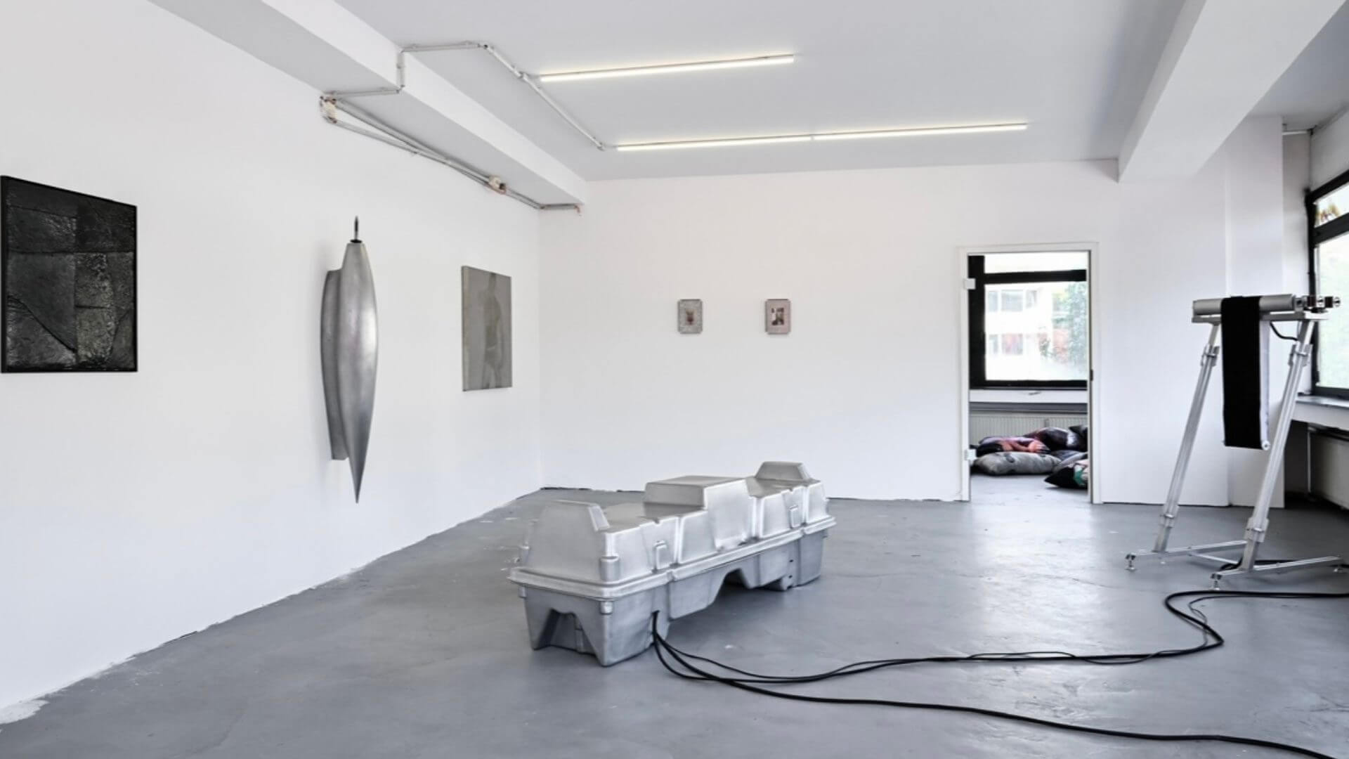 Inside Gianni Manhattan in Vienna, curated with surgical precision by Bianca Stoppani, the exhibition unfolds like a body in slow transformation. The lighting is measured to the millimeter, almost clinical, yet the works pulse with organic and cultural life. The path through the show is not didactic or linear, but centrifugal. Each piece exposes itself and then retreats, suggesting affinities that are tactile rather than narrative. One has the impression of moving through a series of shared flashbacks, a glitchy video, a fabric that smells faintly of animal past, a substance that ferments and reeks.