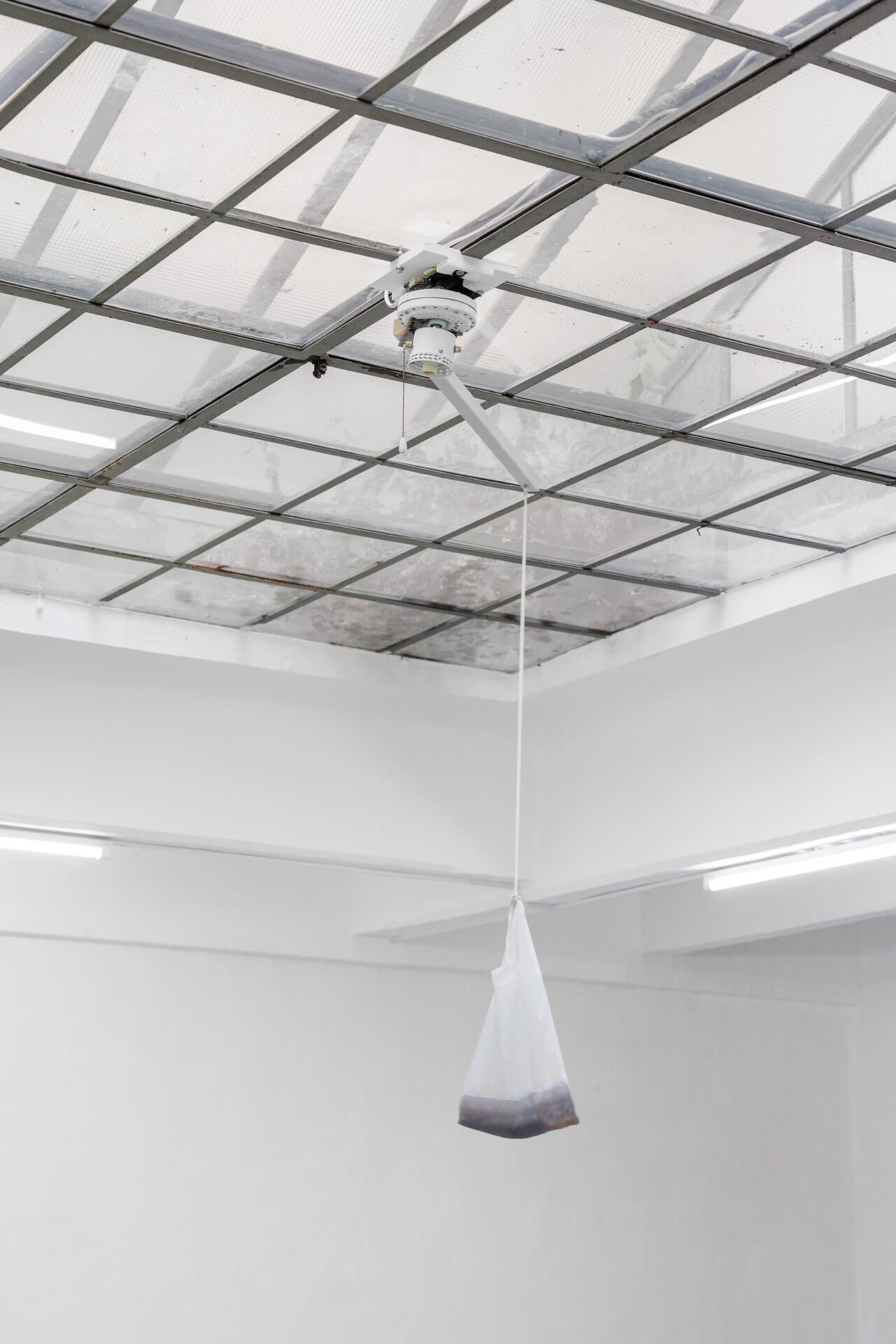 Bianca Hlywa ventures into a more visceral, almost alchemical terrain. The Image of the Tide (2017) presents a fragment of SCOBY, half-alive, half-dead, sealed inside a translucent bag, spinning in the updraft of a fan. The scene is tragic yet magnetic, an organism rendered visible only at the cost of its own life. The acrid smell, the moist texture, the daily labor required to keep it “presentable” without letting it fully die, all turn the work into a silent outcry against the economies of exposure and extraction.