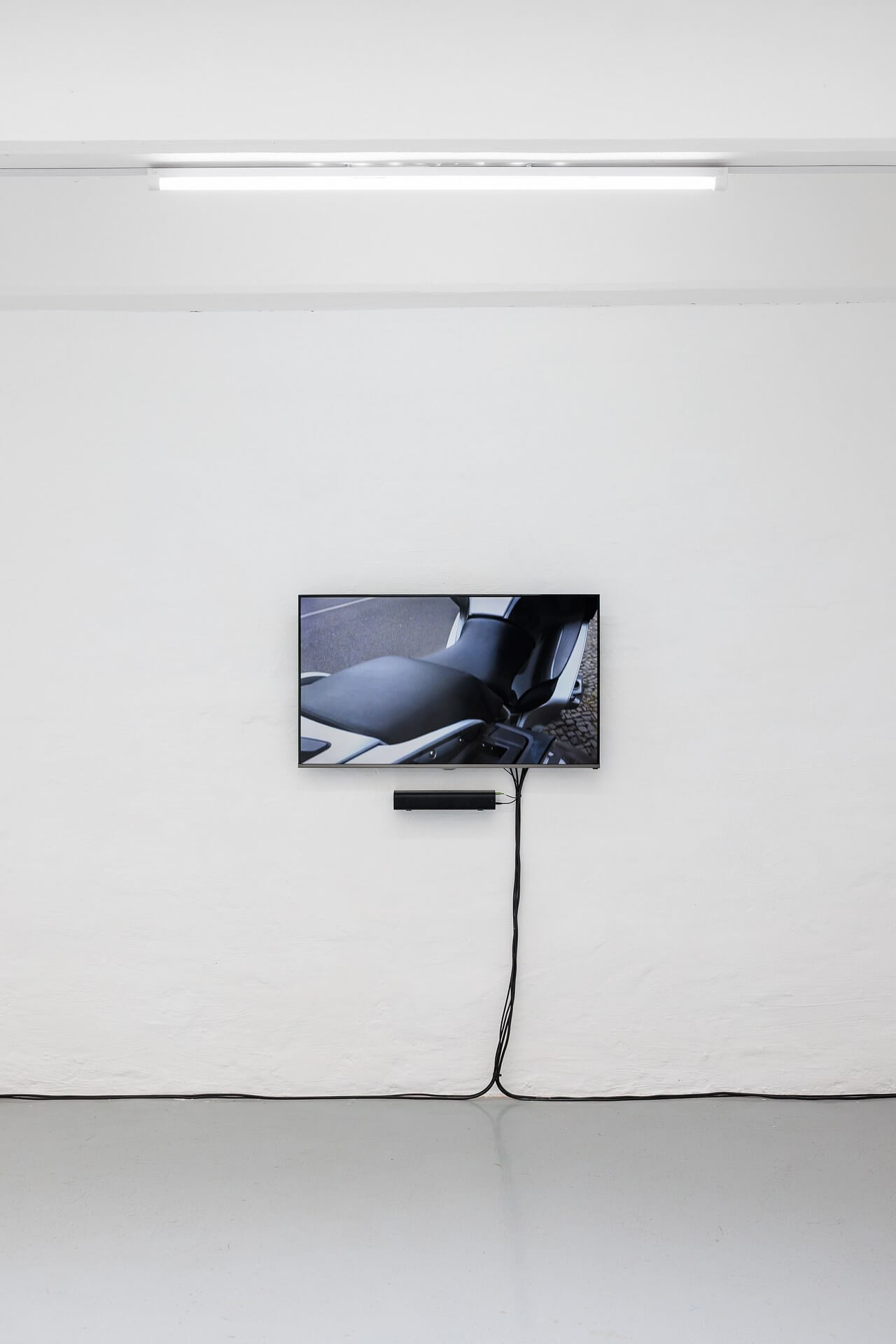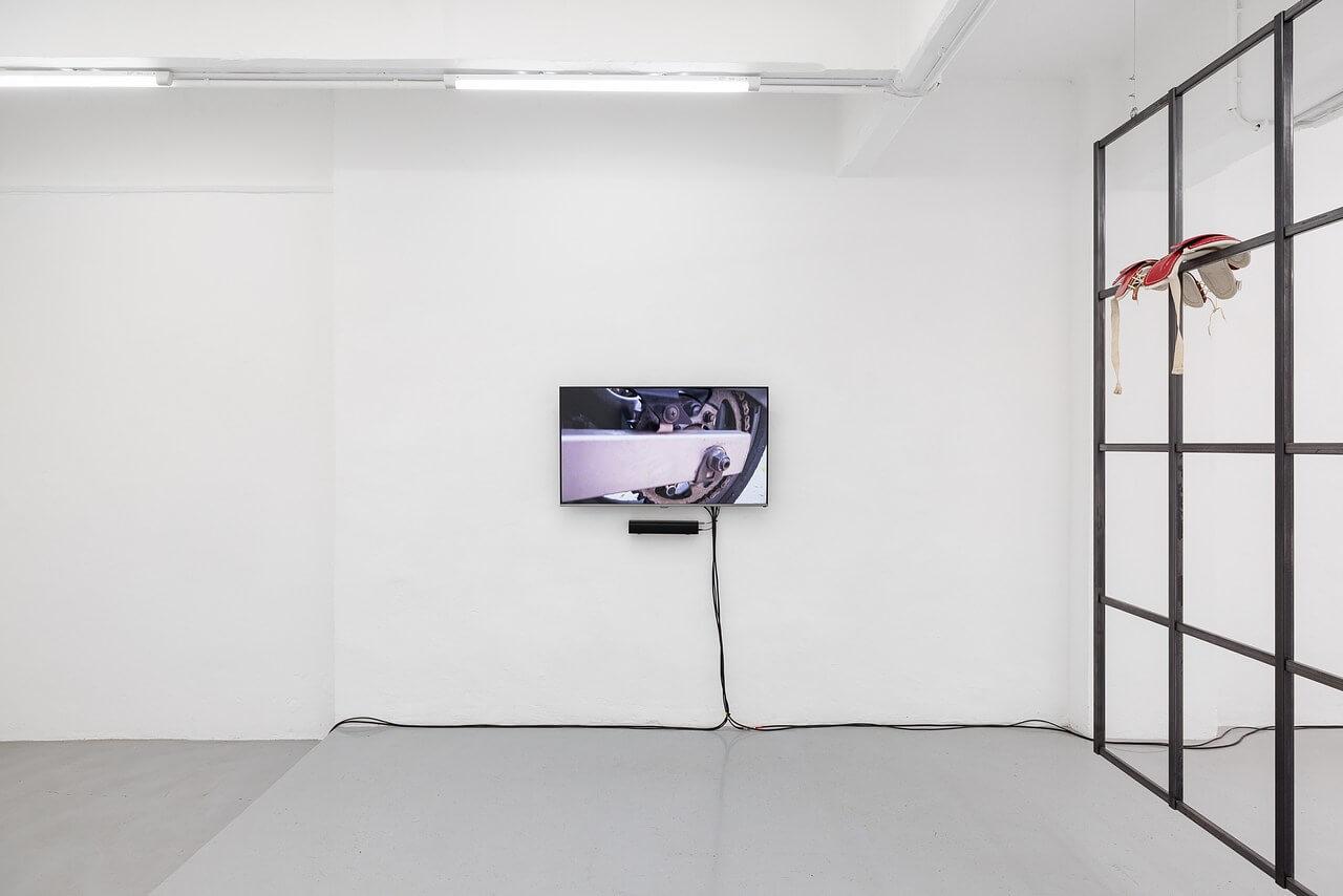 Morag Keil’s Passive Aggressive (2016) orchestrates a visual and sonic suite that blends mechanical voyeurism with the pornography of consumption. Motorcycles, filmed up close with a handheld camera, become sexualized and identity-charged fetishes, symbols of desire that never quite belong to the individual. Six video channels, advertising glitches, and a deliberately exposed tech apparatus all work to sabotage the possibility of aesthetic pleasure, as if to remind us that every seductive image is a minefield.