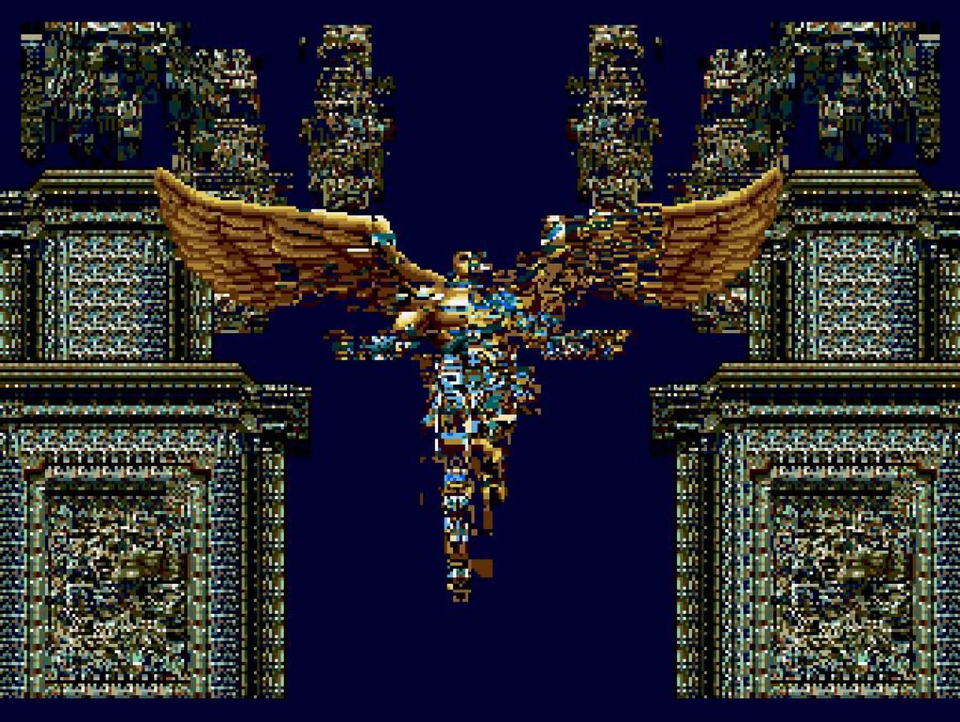 Where Provencher invokes the structural language of systems, Sabato Visconti ventures into their fractures. In Angelcores & Heavenly Sprites, Visconti traverses the broken landscapes of retro gaming, repurposing titles such as ActRaiser, Legendary Wings, Spiritual Warfare, and Wings of Wor as sites of technological failure and spiritual apparition. Here, the glitch is not simply a technical malfunction but a metaphysical rupture, an encrypted form of revelation, an aesthetic of the sacred emerging from systemic collapse.