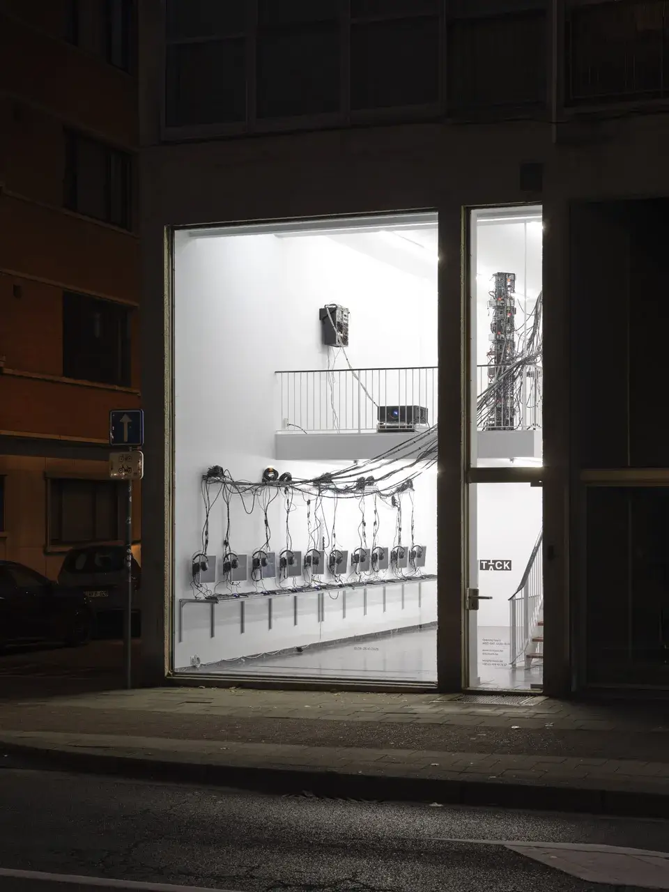 A big inspiration for how you can occupy the space at TICK TACK was their previous exhibition Elektrosex with Michael Sailstorfer. I knew I wanted to utilize the atrium space so people would have a full view of the cables.
