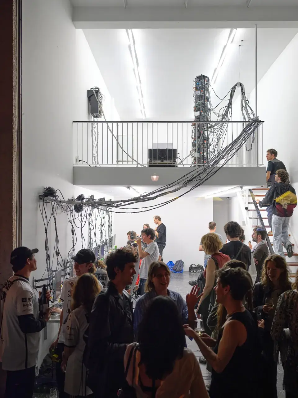 With LAN, Brennan Wojtyla transforms TICK TACK into an immersive installation that fuses gameplay, network infrastructure, and architecture, merging early 2000s LAN party culture with the concrete brutality of De Zonnewijzer. The exhibition moves fluidly between digital nostalgia and spatial manipulation, between participatory culture and infrastructural reflection. At FakeWhale, we spoke with Brennan to dive deeper into the concepts, motivations, and implications behind this radical intervention.