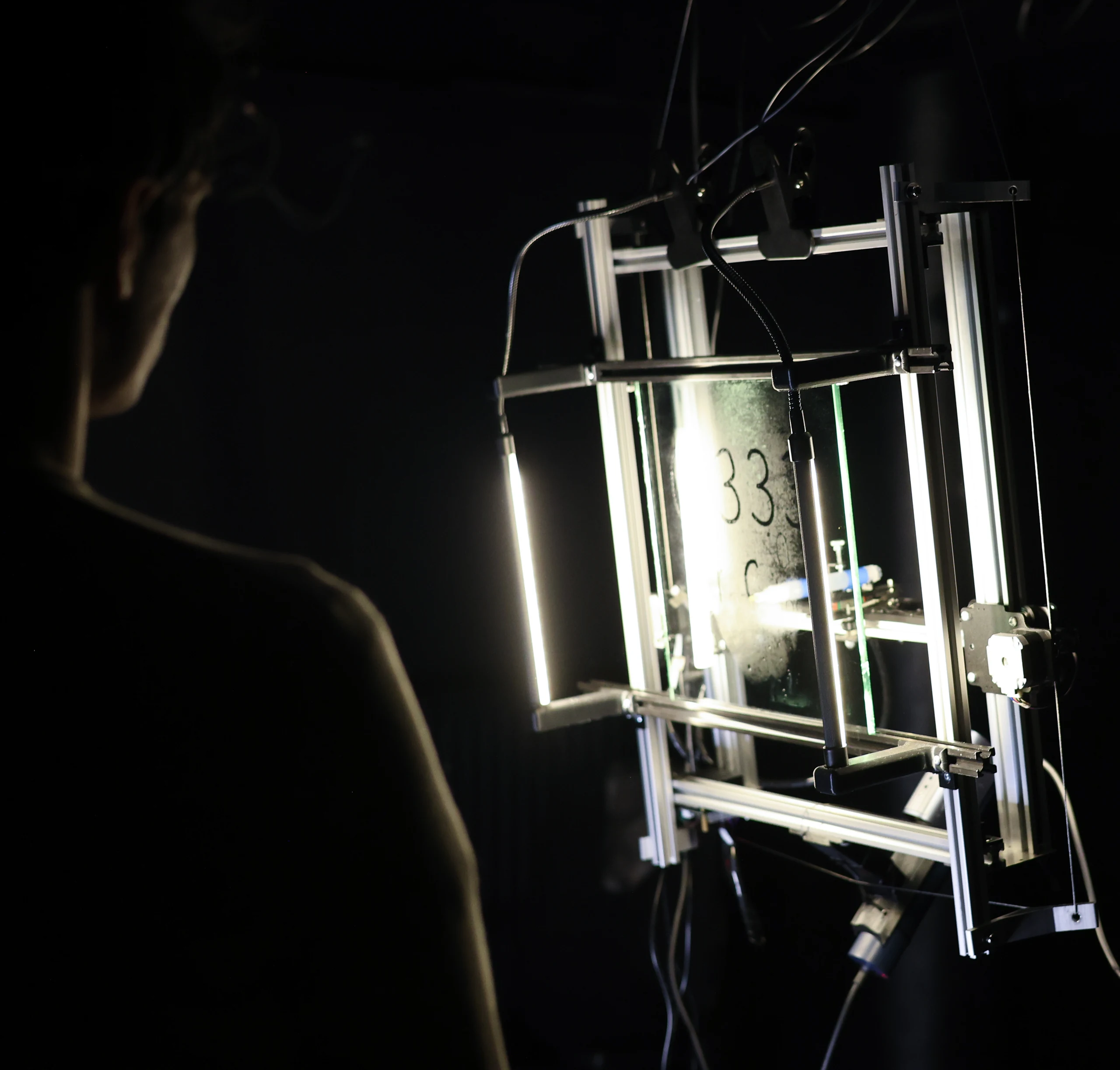 Carbon Technostructure - Neural Fog - 2025 - modified plotter, GPU and raspberry pi - credit: Ophelia Van Campenhout
