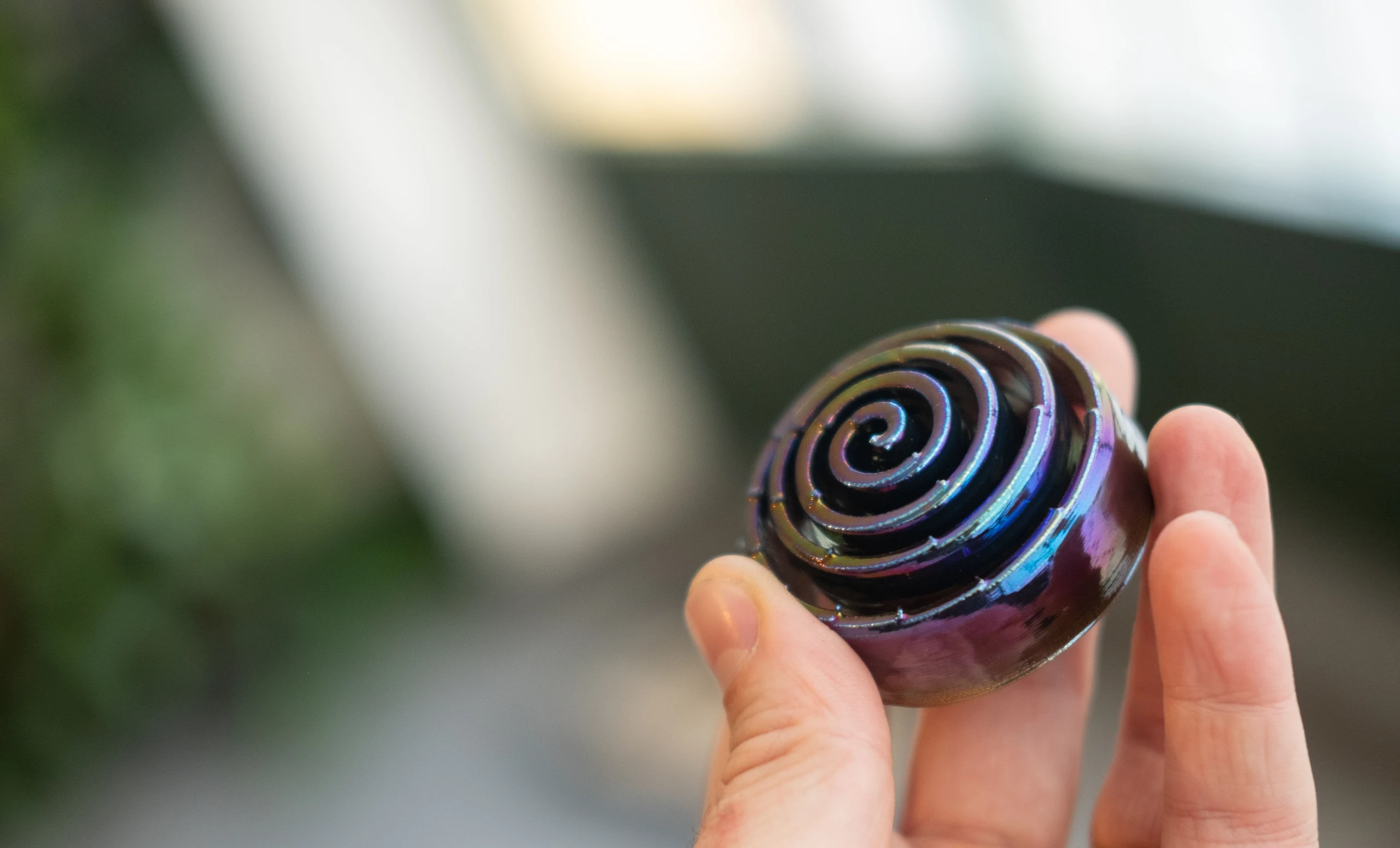 Spiral 2025 - 3D printed clay - eosin glaze - credit: Guillaume Slizewicz