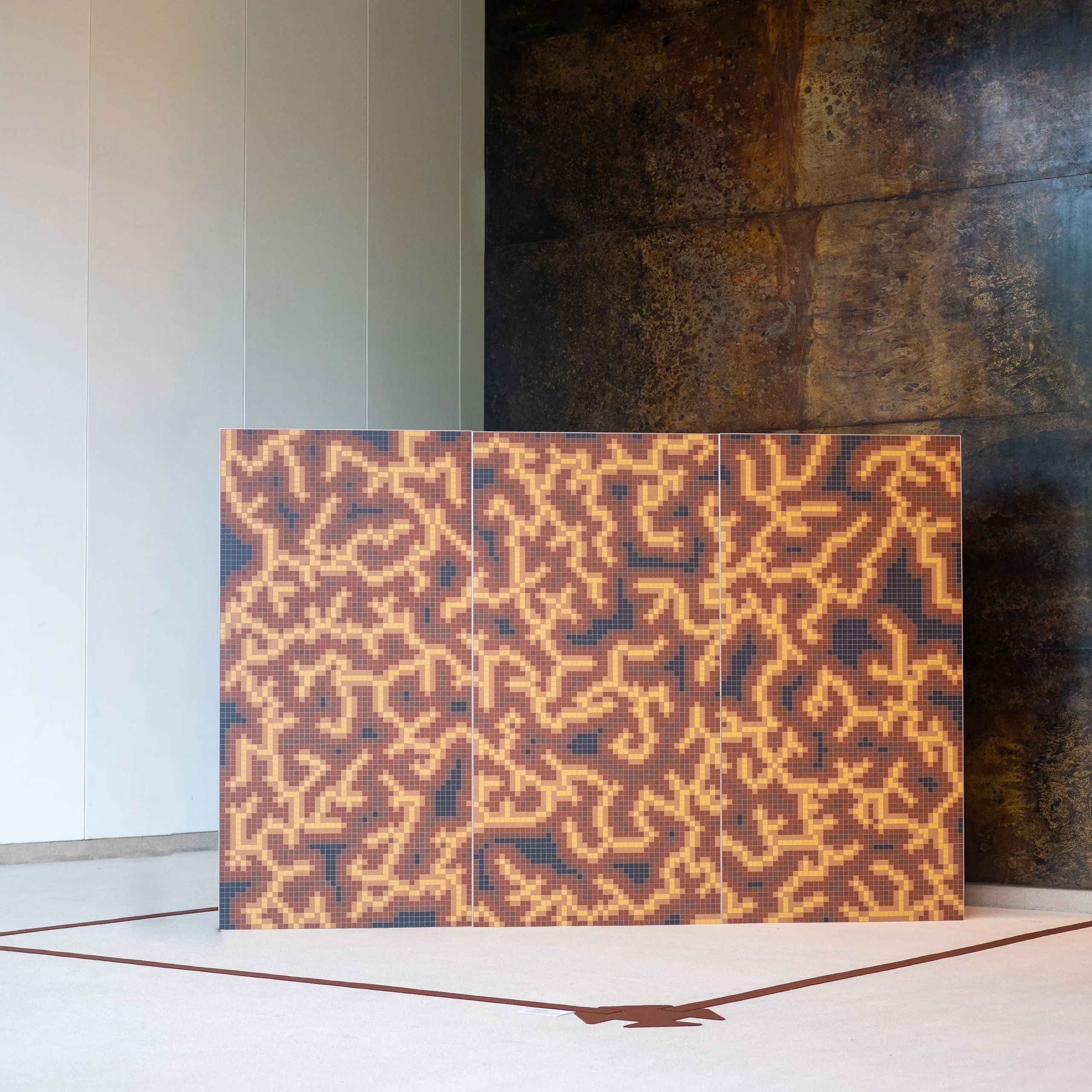 The question we kept coming back to was: how do you get movement, organicity, a sense of flow, out of a rigid square grid? Because traditional mosaic has that : when you look at a Roman floor, the tesserae seem to ripple. The algorithms gave us a way to approach the same problem from the other end: define a set of simple rules and let the pattern emerge. The project is currently showing at Subtile Gallery in Luxembourg as part of our exhibition Game of Life, alongside guest artists Sophie Thomassin and Beatrice Pettovich and we are currently looking for opportunities to apply the same techniques to large surfaces.