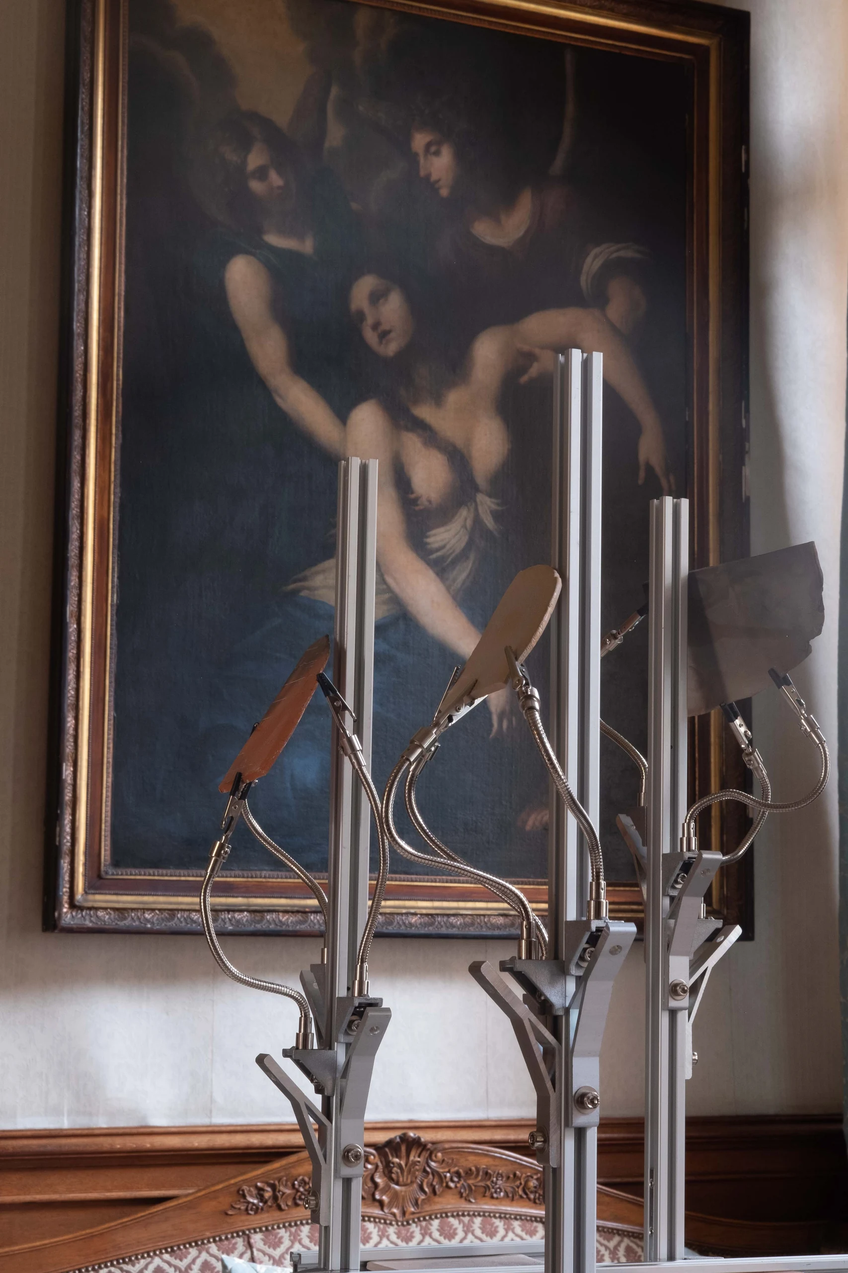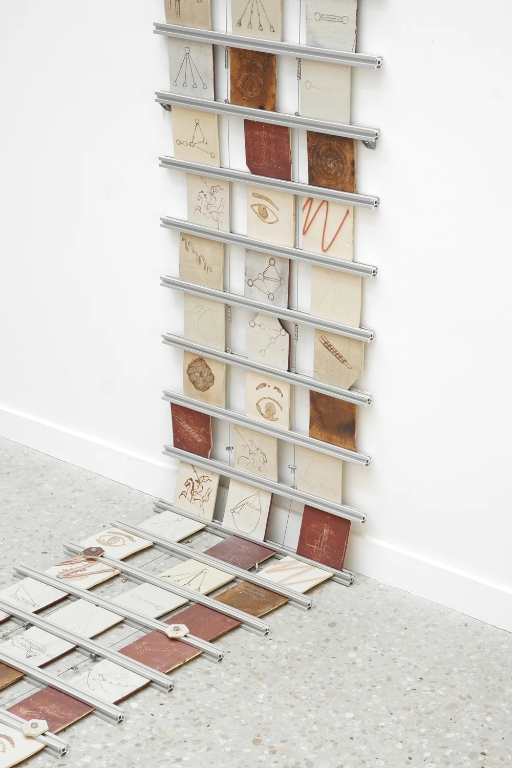 Fragmented memory - 2025 - clay, aluminum profiles, gooseneck holders