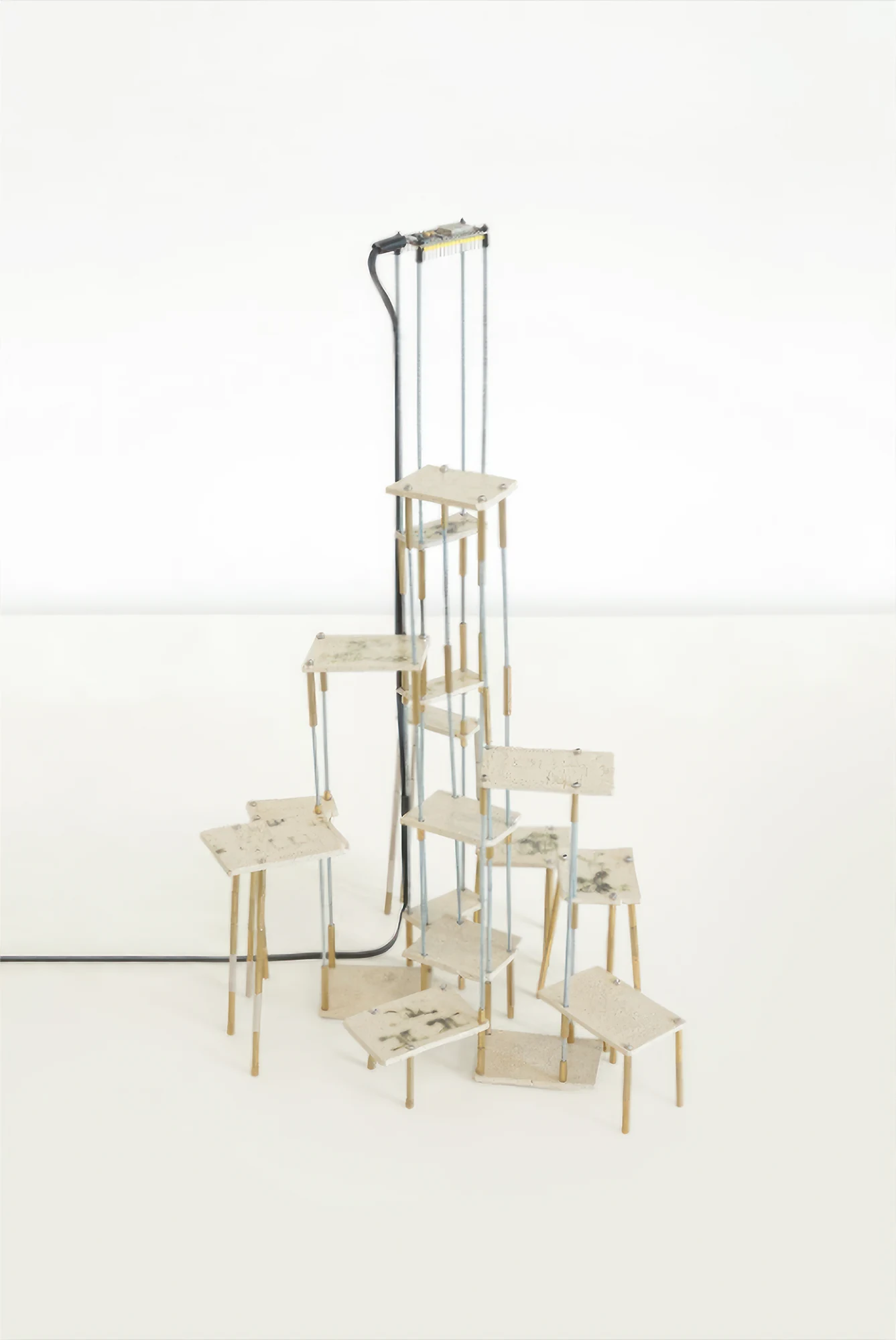 the Stack - 2023 - steel rods, brass spacers, clay and esp-32 - credit: Dana Savic