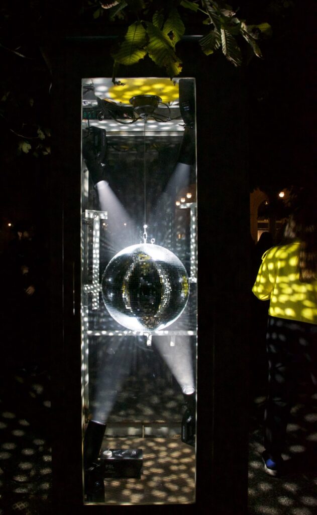 To this end, I created a system of devices for the nightclub (sound, lights, smoke, lasers, various effects) that operate solely on their own, throwing a party only in the absence of an audience. Every time someone peeks in to enter the dedicated space — curious to see what’s going on, where the music and lights are coming from — thanks to simple motion sensors, everything stops, plunging into silence and darkness. So, there’s little to nothing for the audience on a visual and sensory level, but a strong emotional response emerges, leading to uncertainty, questions, and liberating laughter.