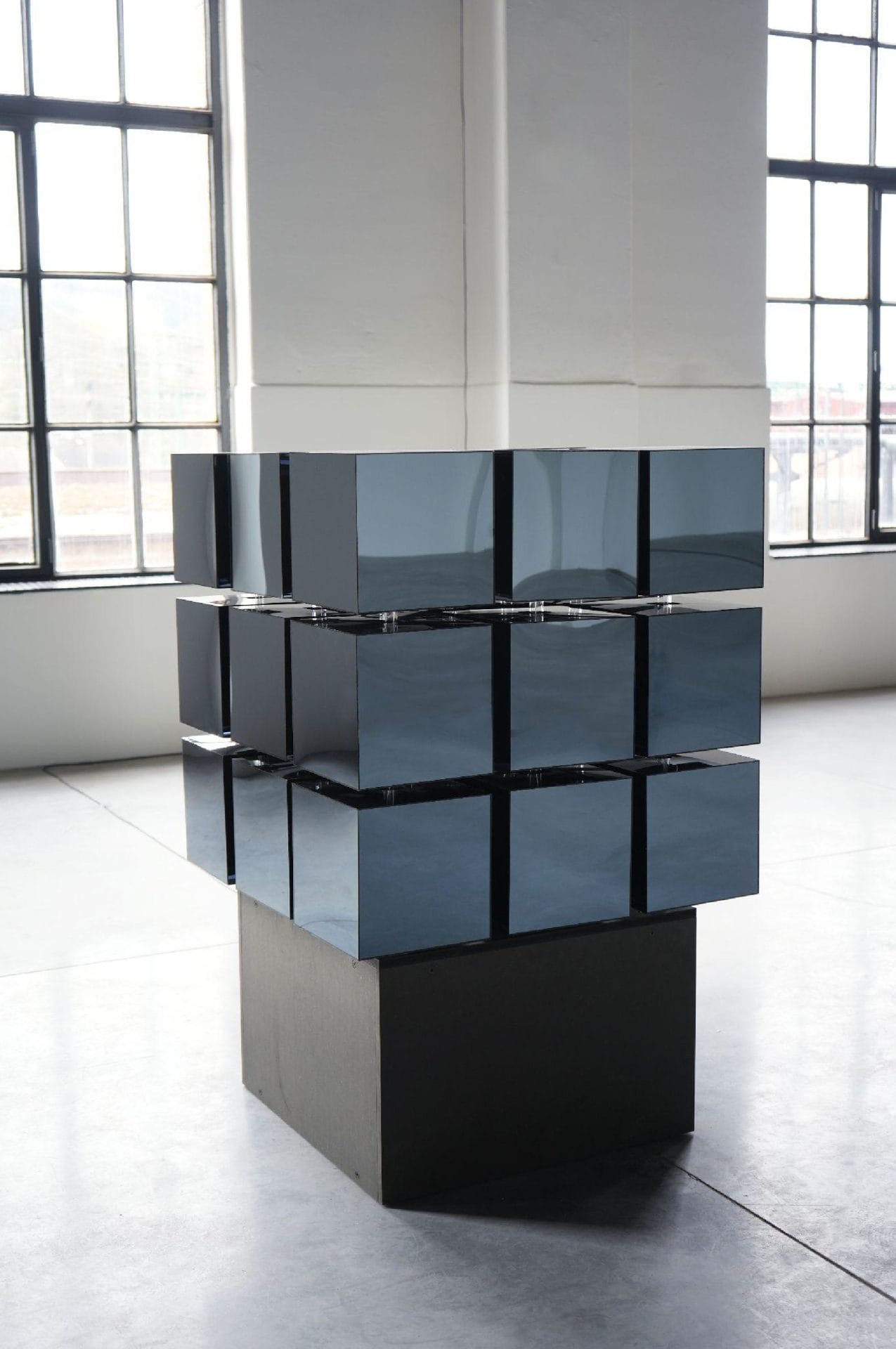 Our works often appear minimal at first glance: Just Squares on the wall, for example. But then you realize that they are moving very slow, constantly changing the position and the composition is in a constant state of change. We don’t have to design instability, reality already is quite unstable. Our task is to create artworks in which people can find themselves, something of their own reflected in the artwork, that can be very different for every person. We are not trying to illustrate instability, but to invite a moment of hesitation that sparks joy, the unexpected and surprise. When something familiar suddenly feels strange, or something strange feels familiar, those are the moments that stay with you.