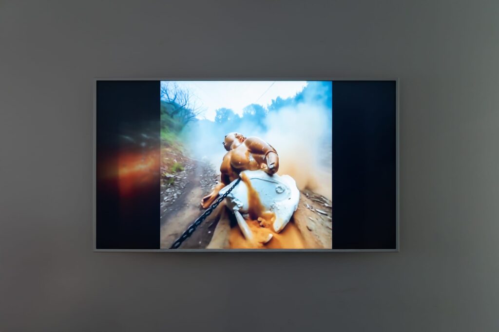 Scerbo’s work also connects with a cinematic intent through the use of a longer-format AI video, yet it transcends traditional filmmaking to reveal a kind of living sculpture in perpetual metamorphosis; a continuous, installation-like flow where brutalism and surrealism merge to create a disconcerting and impactful result.