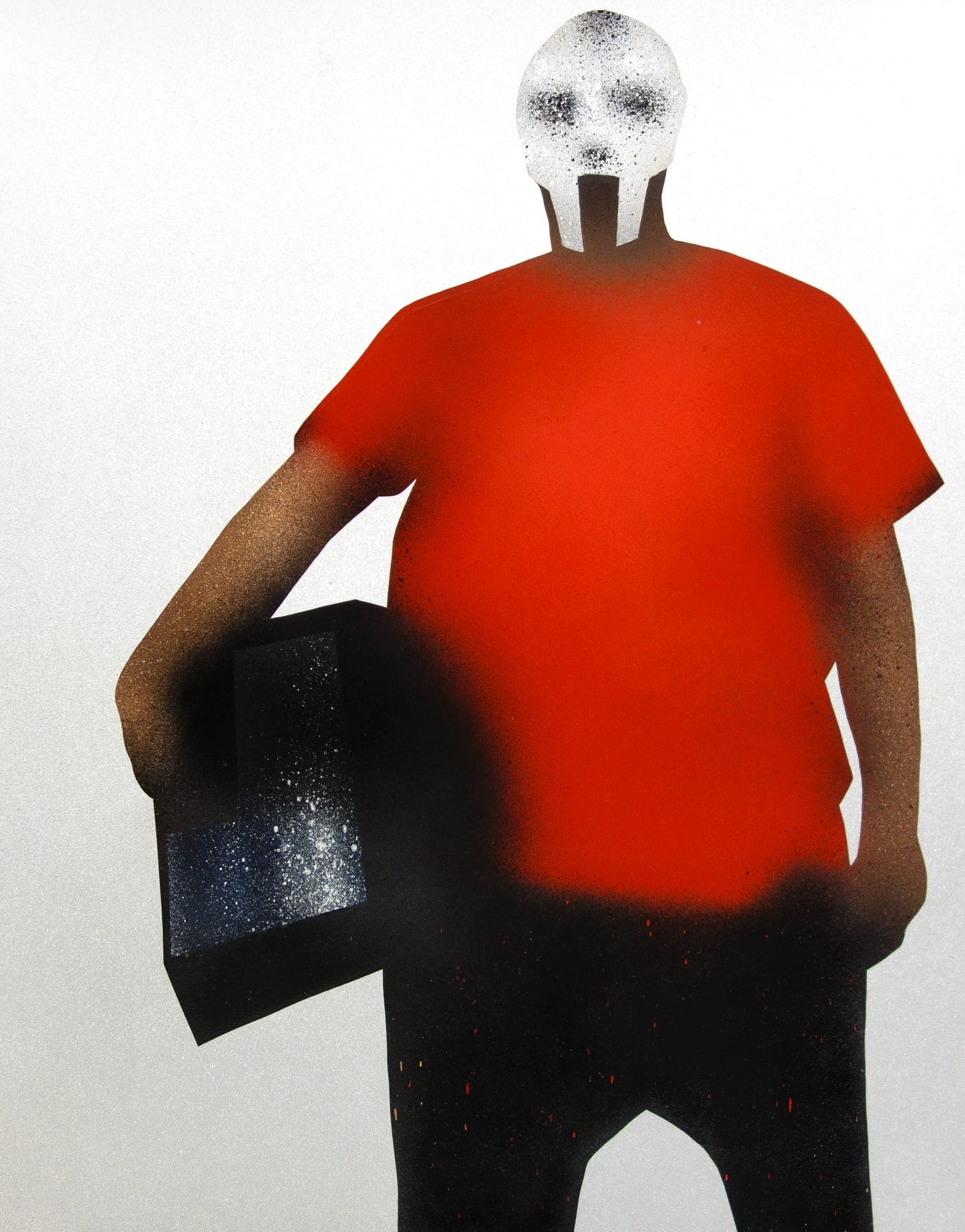 A spray-on-paper work of art, “MF” is Woc’s homage to the iconic figures who have defined the music and street culture landscapes, as MF Doom. It’s a piece that resonates with the roots and rhythm of urban life. The blur and noise suggesting a sense of dynamism and transformation, aligning with themes of cultural and technological shifts. In a way, it tends to capture the very essence of transition-fuzzy, uncertain, yet alive with possibility.