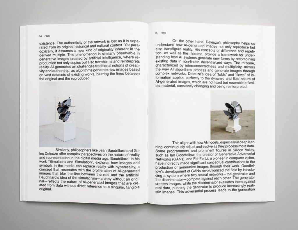 In this publication, human intervention remains crucial, particularly during both the initial and final stages of aesthetic selection, where decisions are made about which images will be included in the final result.