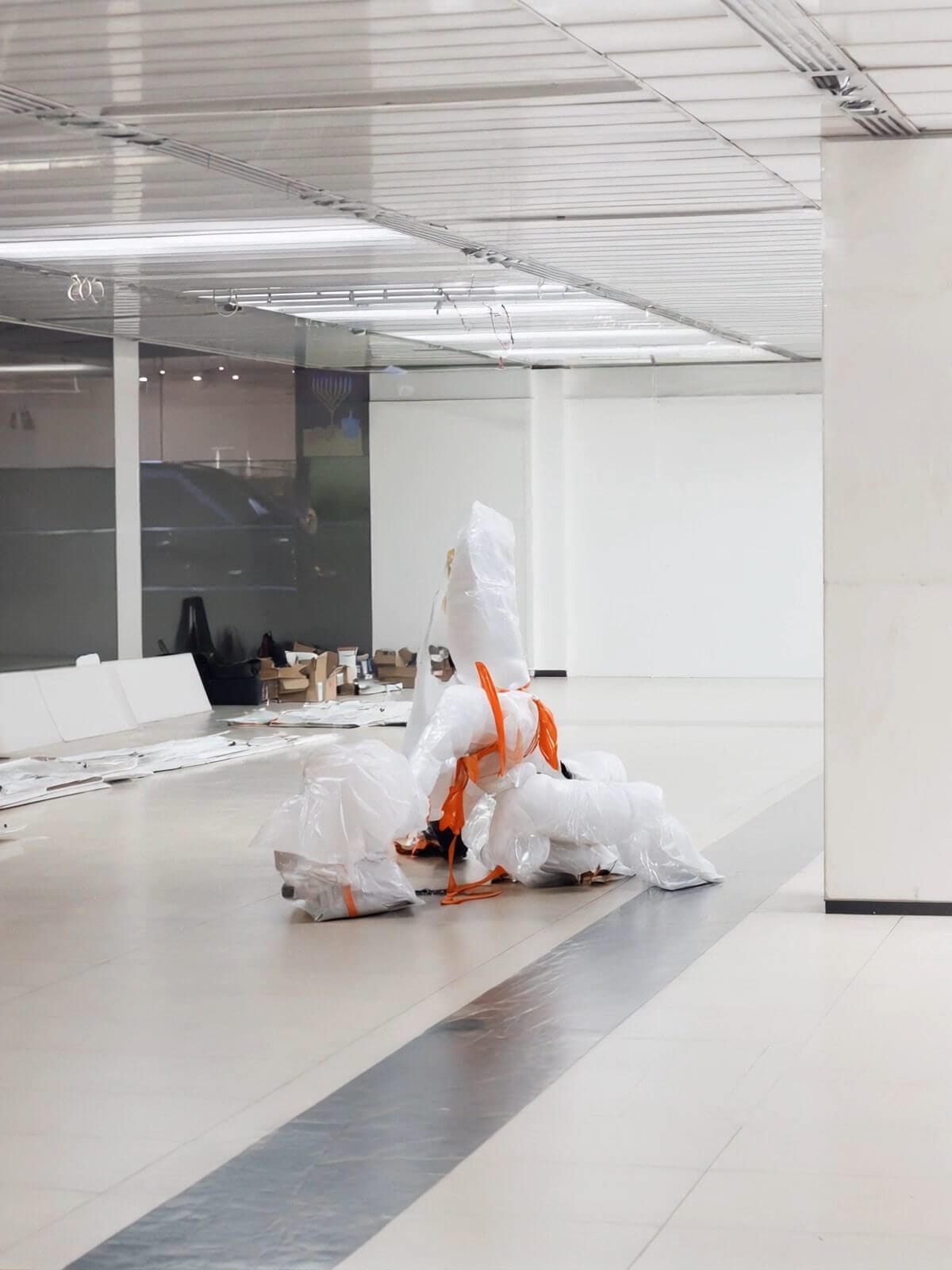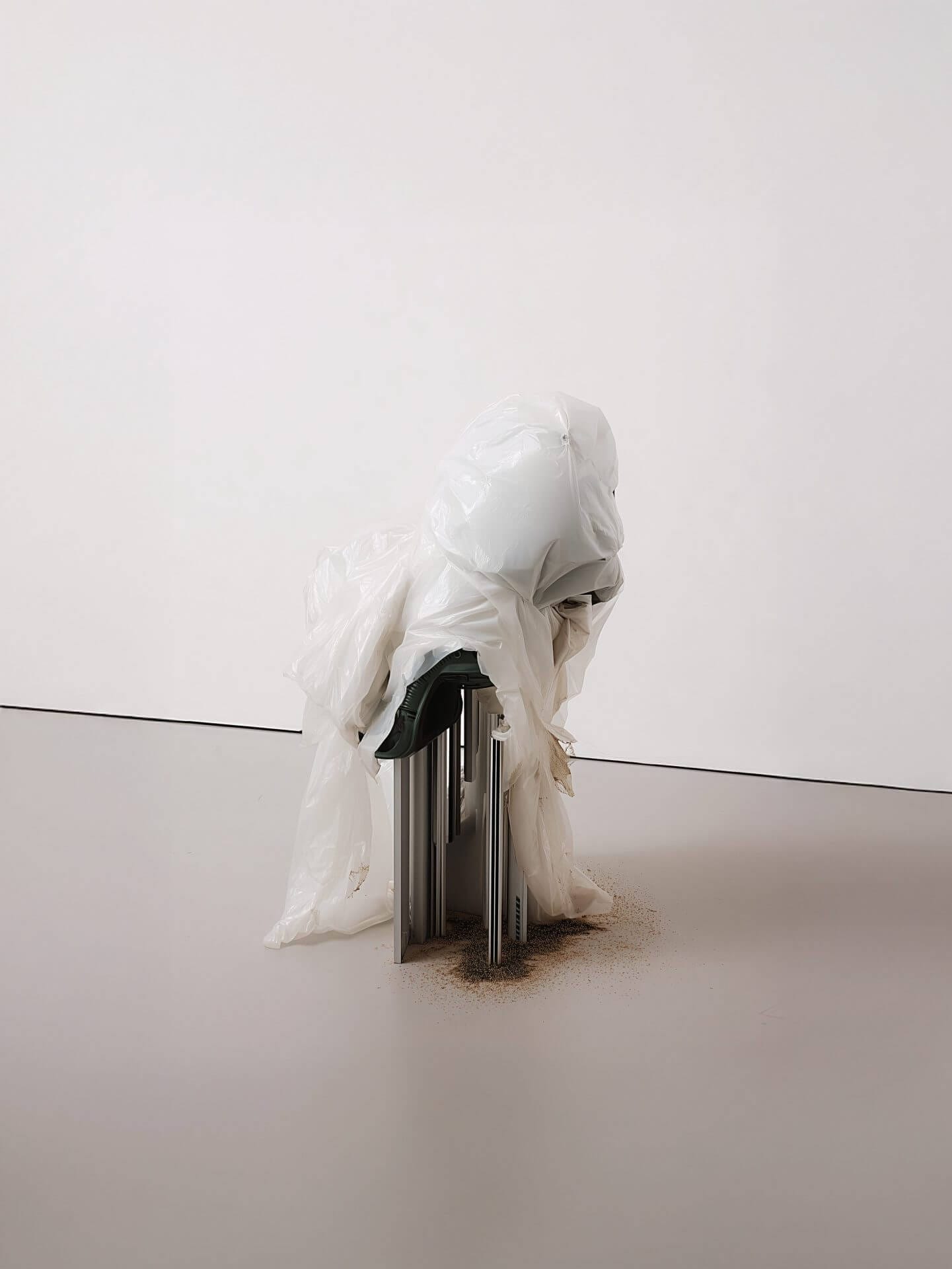 What remains of an artwork if not its reflection? And what happens when even that reflection is a mirage, fabricated by a machine? We’d love to say we were there, but this time that’s not possible. INTERLACED OBJECTS isn’t a physical exhibition, it’s a project. As you move through the photographic sequence conceived by Fakewhale Studio, you don’t cross a threshold, meet a guard, or breathe the dust of a real room. And yet, something stirs. Like the mute hiss of a city that’s lost its voice. The echo of a long-forgotten “For Rent” sign. The eloquent emptiness of a stripped window display.
