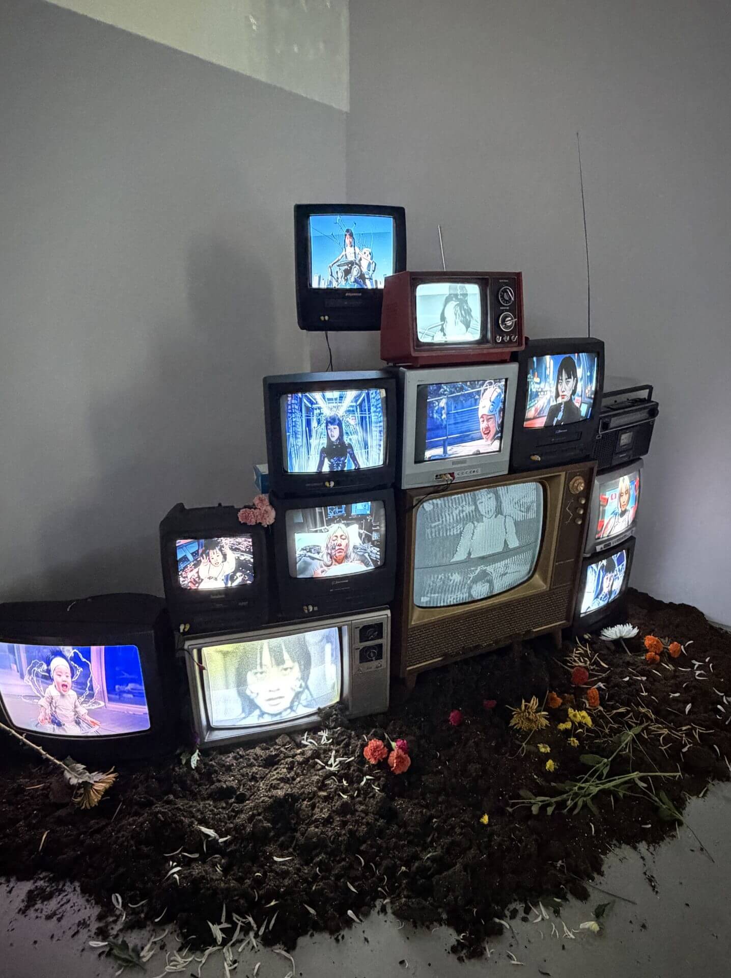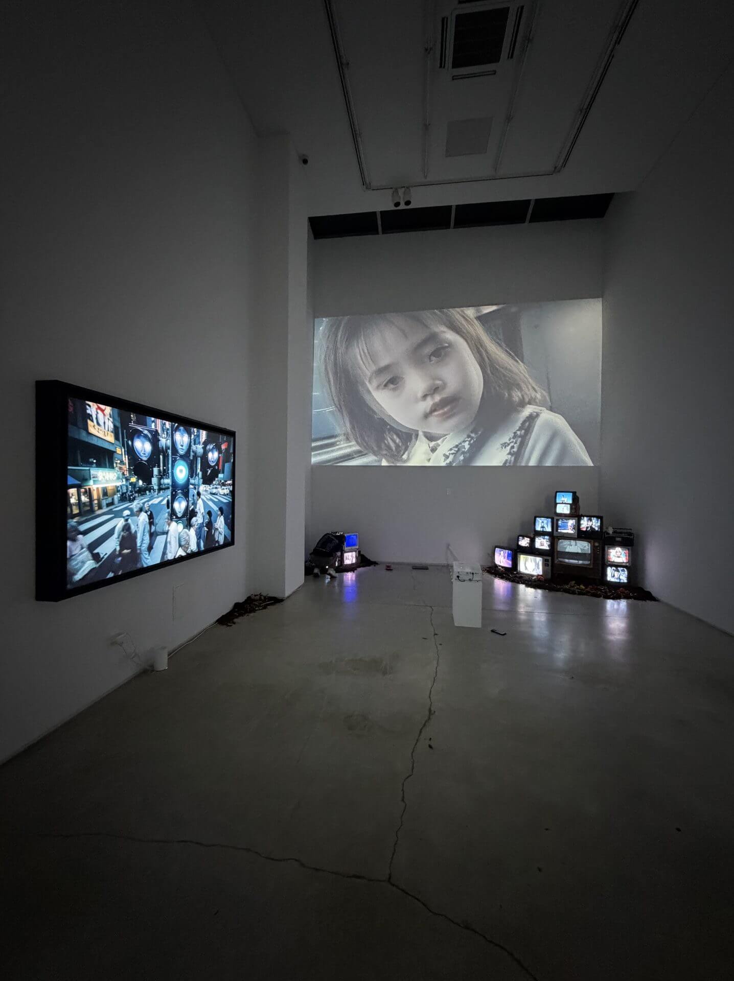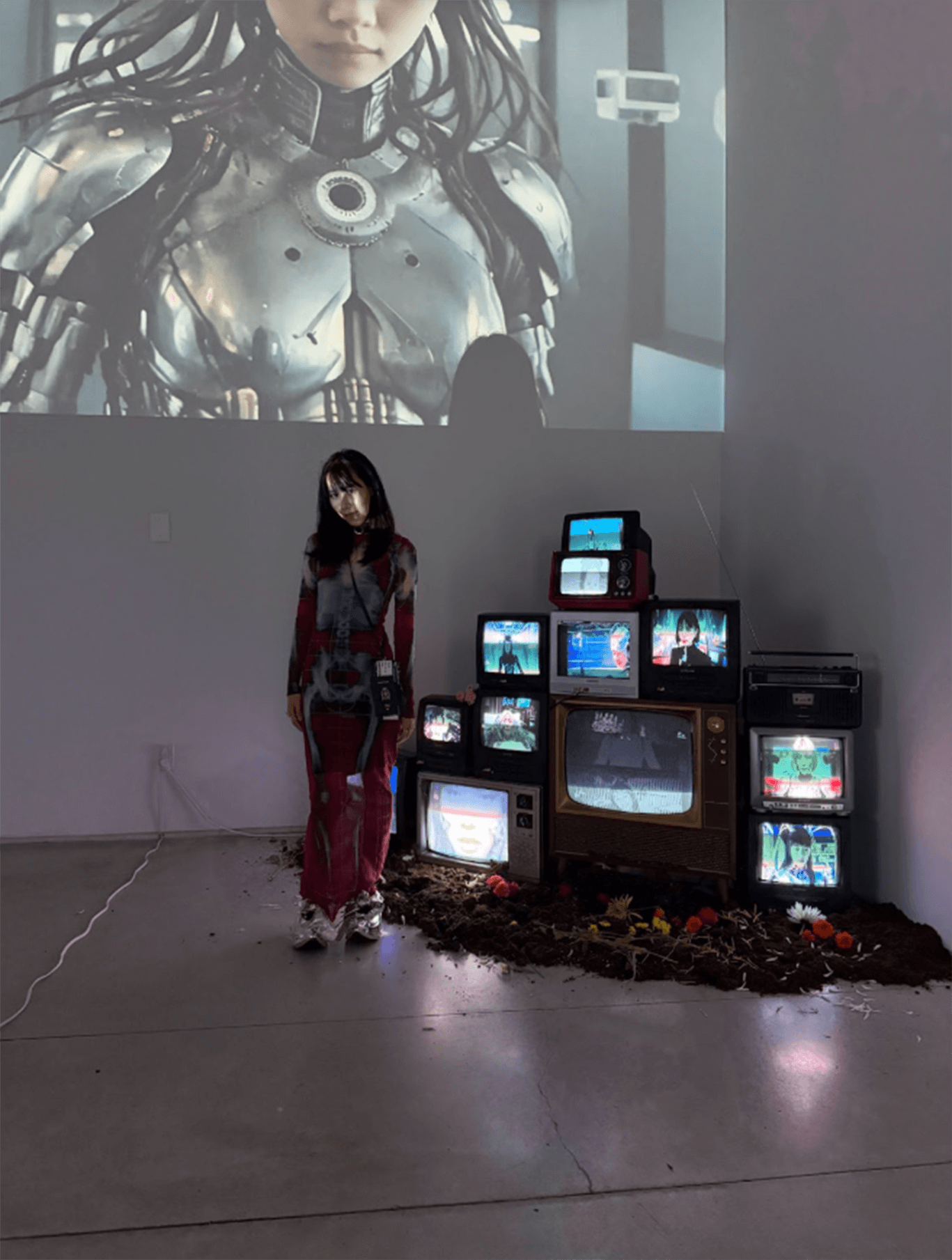 When I entered the venue, it came across as a sacred space, almost like a church with light pouring in from above. I knew immediately that I wanted to build an altar. That altar had to be made of tech relics, what I call OOPArts, such as stacked CRT monitors. Once computer-made memories are projected through them, the perception of reality subtly shifts.
