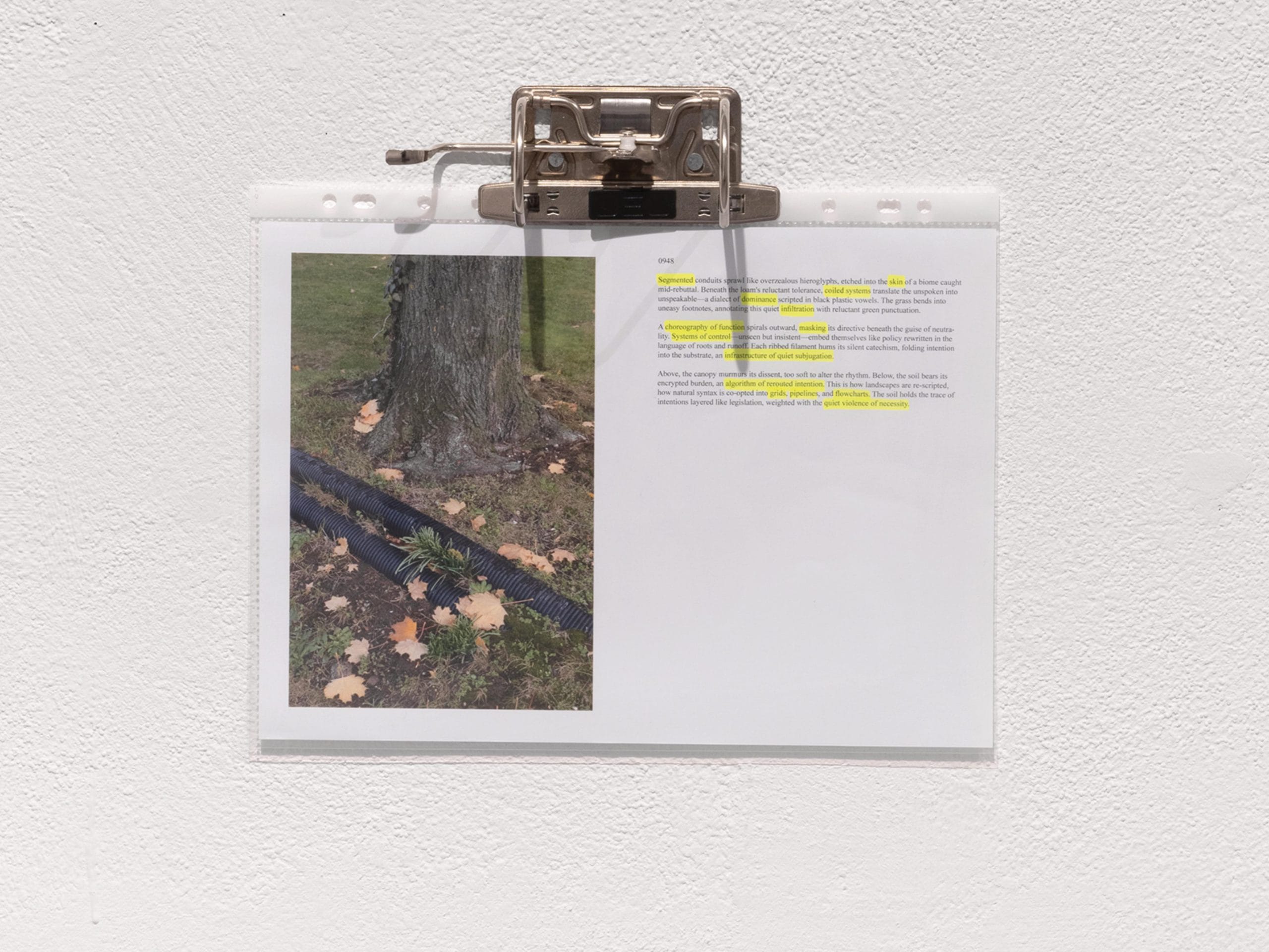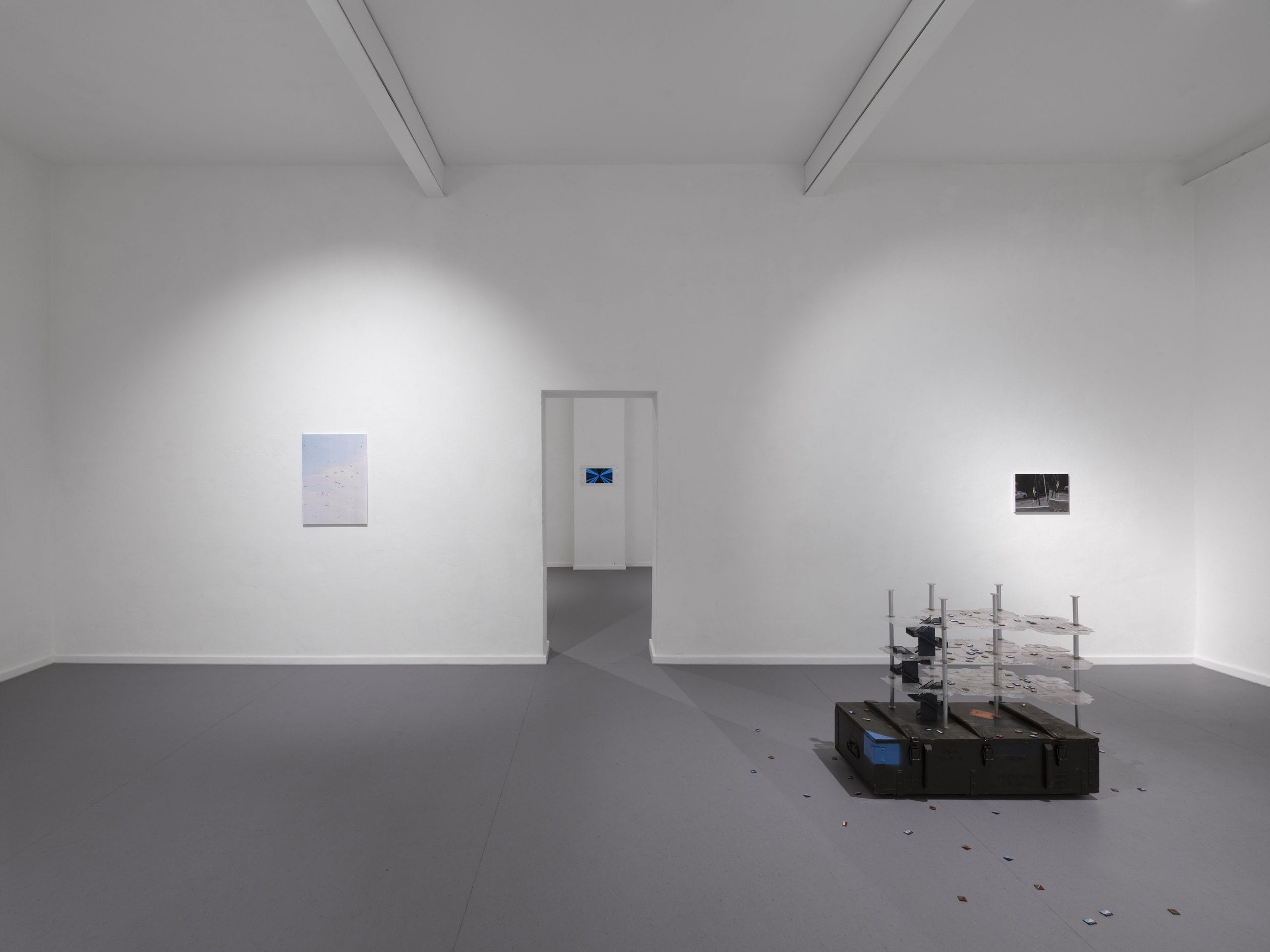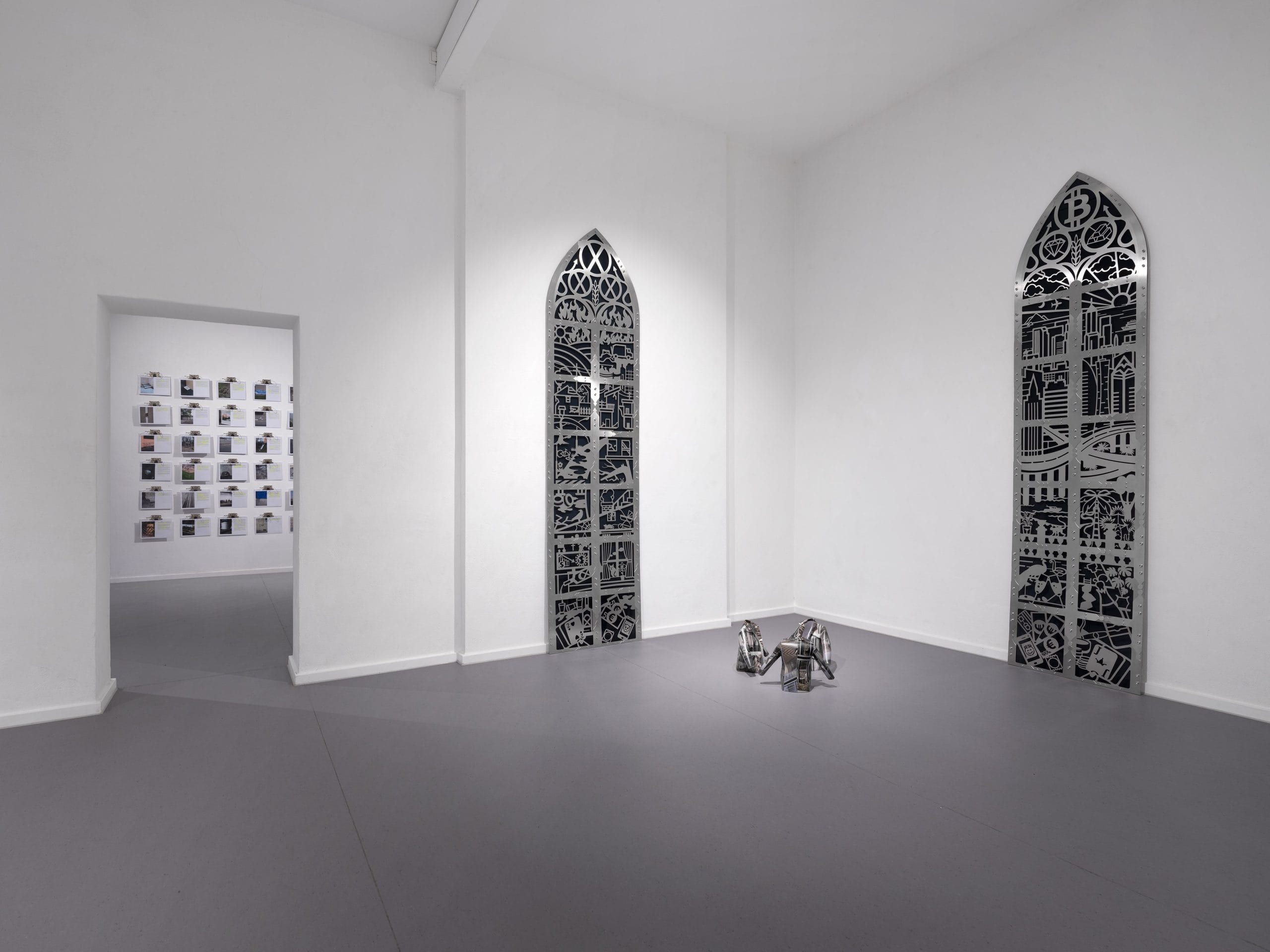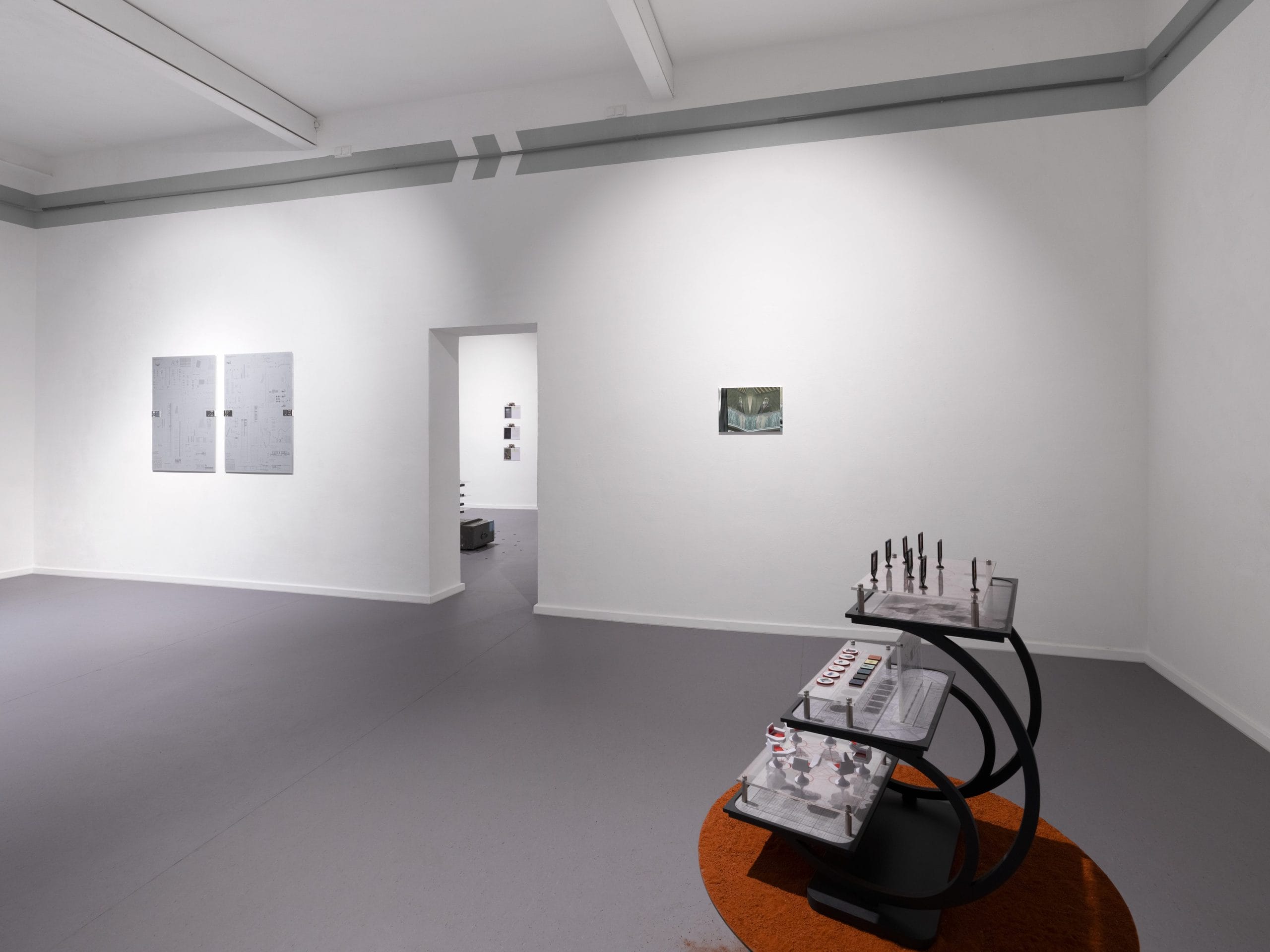 In an attempt to reflect upon and deconstruct future visions proposed by politics, economics, and technology for urban living, the exhibition navigates the mediation of the construction of thought, augmented space, and its real-world parameters. By analyzing various facets of the threshold between the social and the private, the virtual and the symbolic, such a project lastly seeks to reproach those tendencies which have brought it into place, whilst and through transforming them, suggesting an extension, beyond sight.