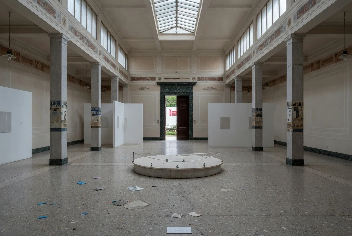 Voices of resistance and performance are also prominent: If All Time Is Eternally Present (featuring Kandis Williams, Meriem Bennani & Orian Barki, and Tai Shani) at Palazzo Nervi Scattolin explores time, body, and subjectivity in a contemporary key, while Official. Unofficial. Belarus. by the Belarus Free Theatre at the Chiesa di San Giovanni Evangelista stages the struggle against censorship through urgent and necessary performance. Closing the circle is Hybrids by Leandro Erlich at the Negozio Olivetti, a perceptual and illusionistic environment that invites viewers to question their own senses, echoing Kouoh’s “oases” as spaces of pause and re-attunement.