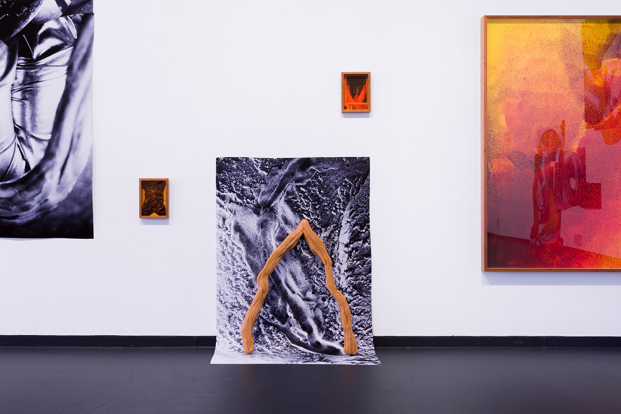 Jack Ball is known for their sprawling photographic installations that explore themes of queer intimacy and desire using collage – a method of thinking and working that involves undoing and remaking to create new forms. Ball draws on the possibilities of abstraction to create works that resist easy reading and instead exalt ambiguous, slippery states. For their first solo exhibition at PICA, Ball addresses the full space of the West End Gallery with multiple images arranged across the walls and a series of sculptural works made in situ. The title, Heavy grit, alludes to underlying sensations and tensions at the core of this new body of work. Within the installation, photographs of materials held in the collection of the Australian Queer Archive appear alongside recent images documenting Ball’s studio constructions and moments of everyday life. The artist’s work in the archives explores fragments and glimpses of trans histories and desires through sensory and material connections. Using techniques of layering, cutting, cropping, enlarging, printing and re-photographing, their compositions contain visible seams, scratches and stains. These arrangements invite an associative viewing experience, drawing entangled connections while also leaving gaps for viewers to relate their own speculative imaginings. Jack Ball is a New South Wales–born artist who has completed a PhD at Curtin University in 2021 and is currently living on Gadigal and Wangal Country (Sydney). Ball’s artistic practice critically engages with the politics and aesthetics of mess and collage as a framework for exploring trans and queer photographic representation. Ball’s recent solo exhibitions include Tight Crop at Sydenham International (2023) and Wind Chill at the Art Gallery of Western Australia, Perth (2021), as well group exhibitions the pleasurable, the illegible, the multiple, the mundane at Artspace, Sydney (2021) and Love in Bright Landscapes at PICA (2021). They have participated in studio residencies at PICA, SIM in Iceland and the Sillanpää Art Residency in Finland. Jack Ball is represented by sweet pea gallery, Boorloo, Perth.