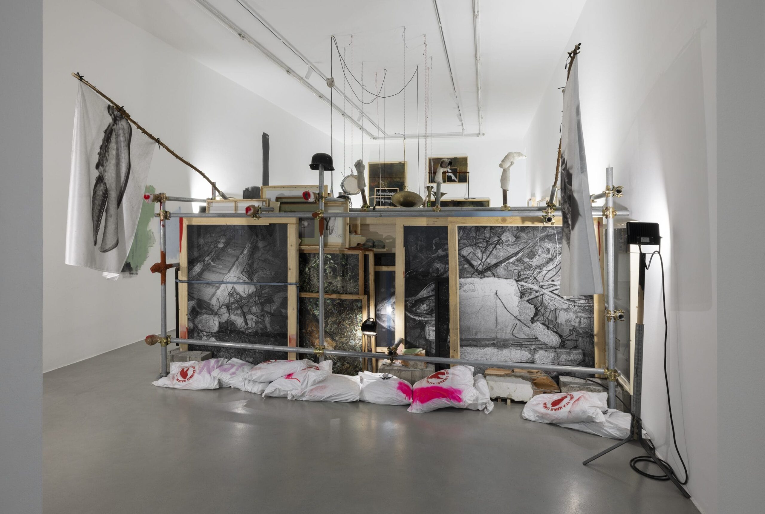 A perfect example of this approach was my exhibition at Francesca Minini. It was absolute chaos. Initially, I wanted to build a barricade of artworks, erect fake walls, spray-paint everything, and write over it all. But once I arrived, I felt like I was working on a Cinecittà film set—something too staged, too artificial. So, I erased everything. In the end, the most authentic act was precisely that erasure. I realized that I had made a mistake in trying to construct something fake when the real essence of my work lay in imperfection, in the refusal of that gesture.