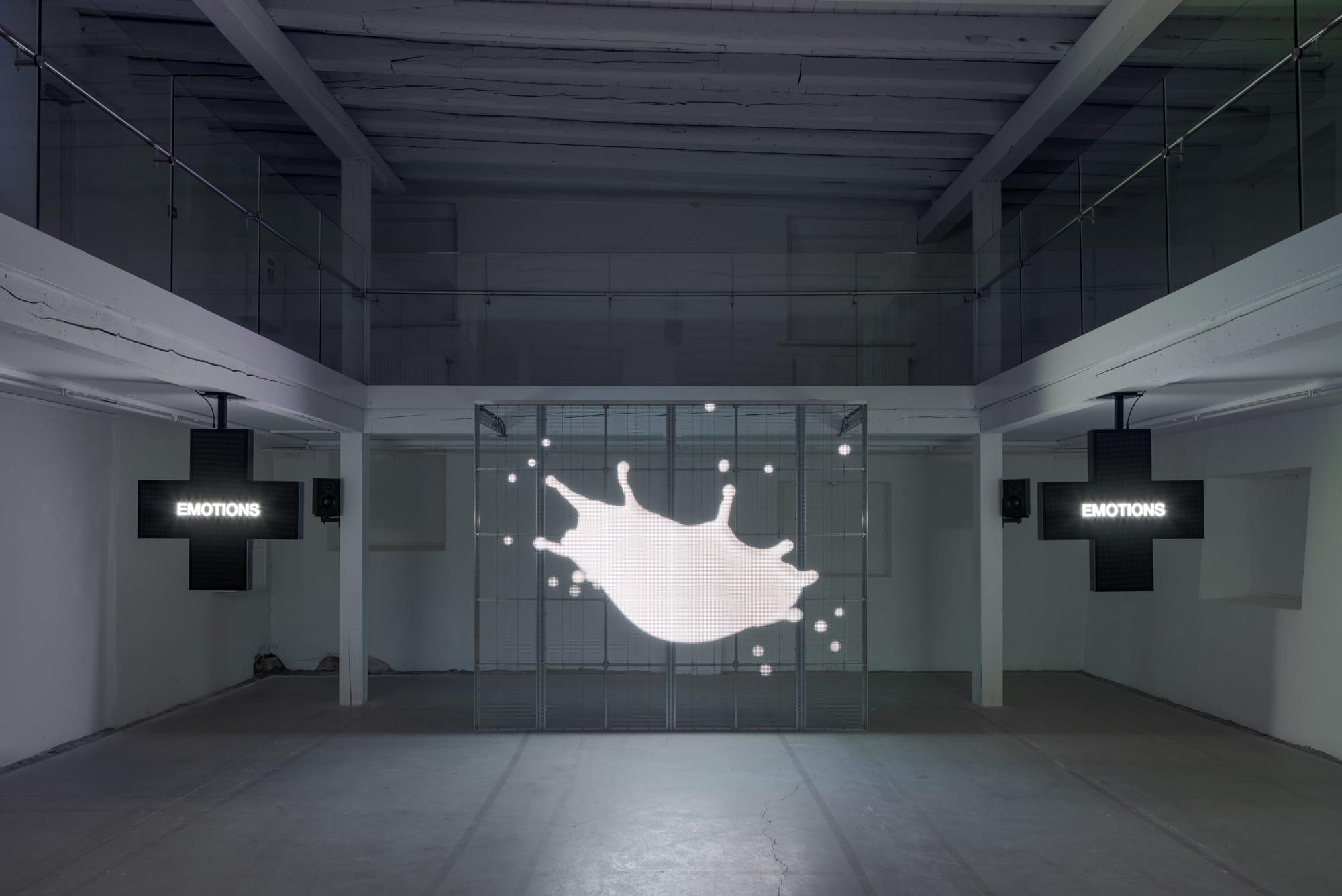 In his largescale film installation Milk Plus at Viborg Kunsthal, Danish artist Jens Settergren (b. 1989) indulges in the many guises of milk and its role in visual culture. Across his sleek, minimalist, and refined simulations, Settergren traces how the aesthetic approach of globally shared strategies for marketing milk have altered its symbolism and contributed to the transformation of a technologically mediated world. What one could call the ‘erotics’ of milk—a manifestation of desire as the emotional and physical dimensions of the brain and body—are bound to capital. This was not always the case. The foundations of milk in collective human imagination of course has roots in perceptions of care and maternal nature—in creation myths, the milk of other creatures nourished the first human beings, such as the Norse mythology of Ymir and the cow Audhumla, or otherwise created the world itself, as with Hera’s breastmilk (γαλα, gala) that spilled to build the Milky Way (γαλαξία, galaxy). The got milk? campaign changed things by targeting the consumer through a deprivation strategy: rather than generating new customers, the sales of milk were encouraged by instilling an anxiety and fear among existing drinkers (despite questionable health benefits or statistics). Bodies lacking in milk were less efficient, and therefore, inferior. Departing from its understanding as an ancient life source across global cultures, milk was suddenly the leading influential symbol reflecting contemporary ideals for productivity and perpetual optimization. What started as mother, turned into man, and ultimately machine.