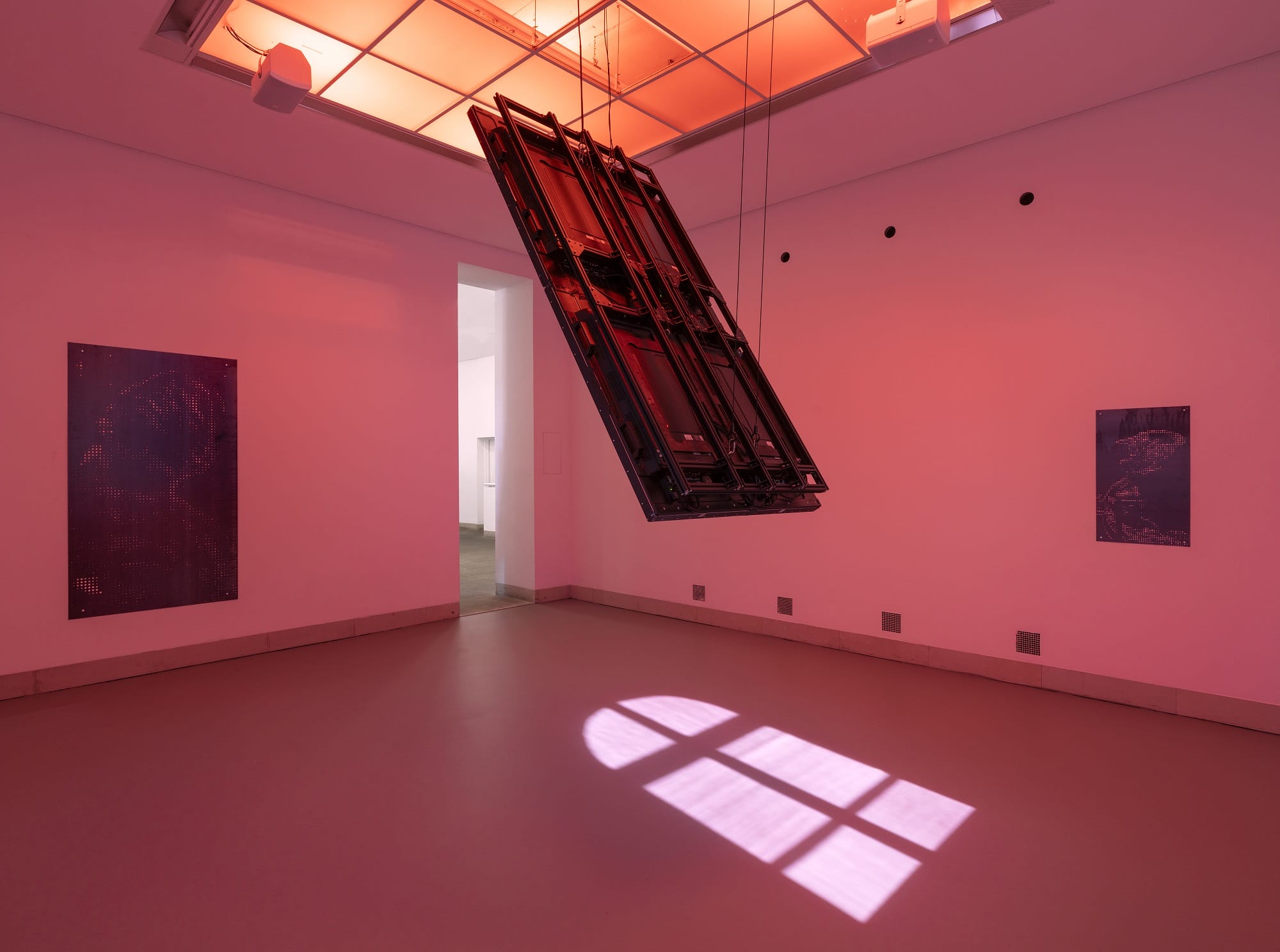 In two contrasting rooms, Justin Urbach explores these questions. While the first exhibition space focuses on visual perception as a physical experience and its technological optimization, the second room shifts towards machine vision, a data-driven process detached from human perception. Visitors encounter a wavering light and a soundscape of algorithmic sounds extracted from the technical parameters of the video works. A blurred video projection gradually reveals a rotating eye undergoing laser surgery, referencing the evolution of tools designed to enhance vision, from telescopes to modern corrective procedures. Meanwhile, another video, SUBTLE ECHO II (2024), speculates on future technologies where microchips, connected to the brain and specialized camera-equipped glasses, restore sight to blind individuals—expanding perception beyond natural limitations.