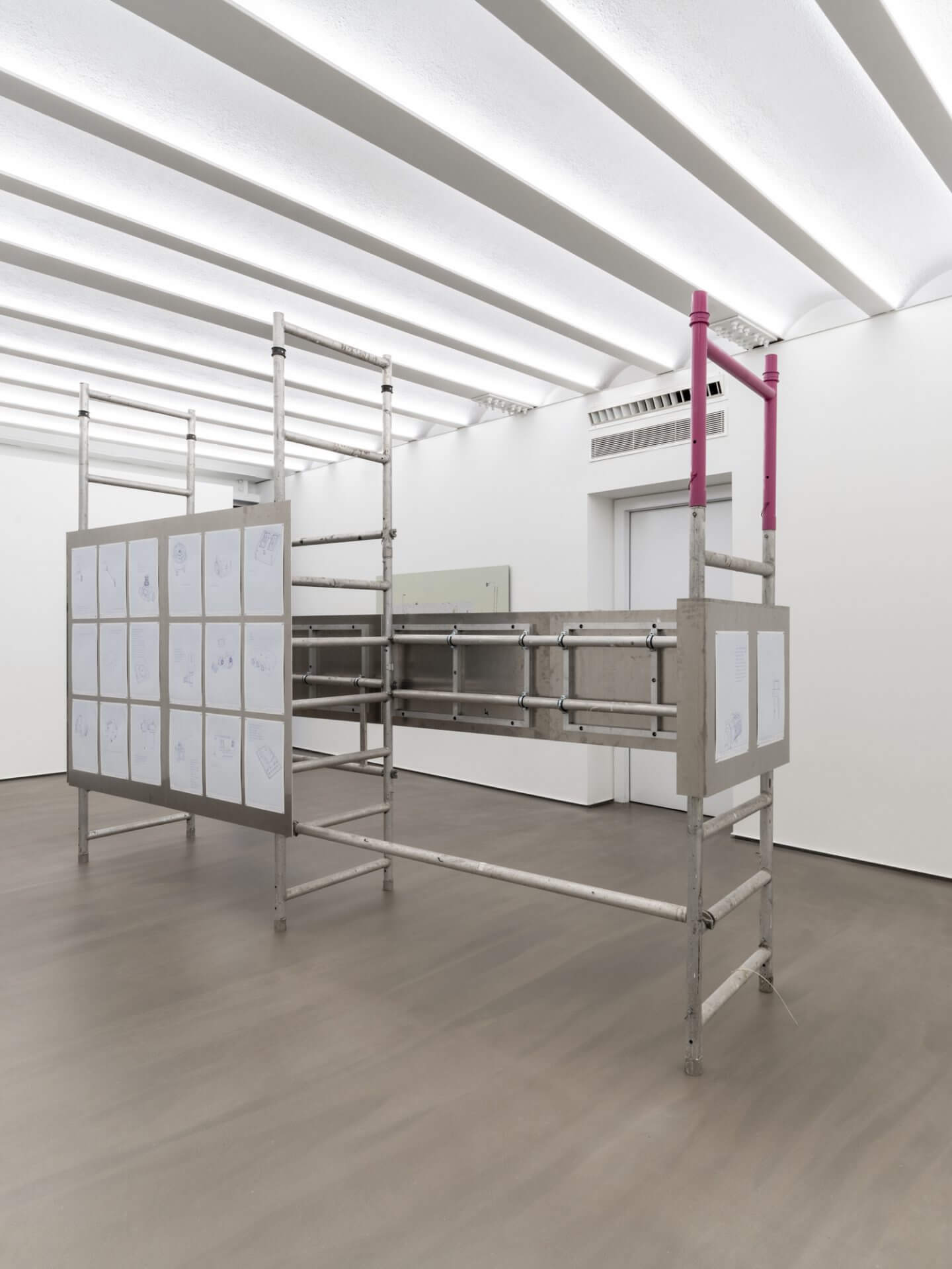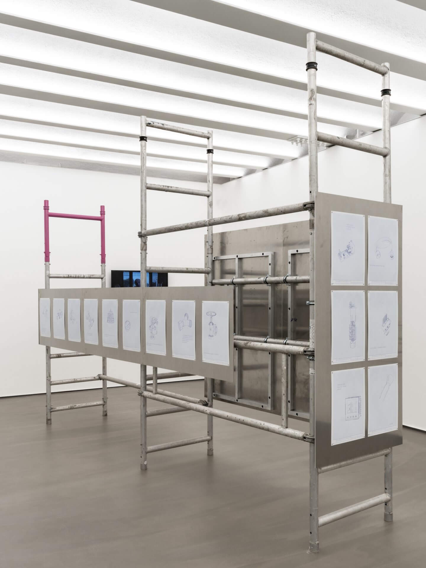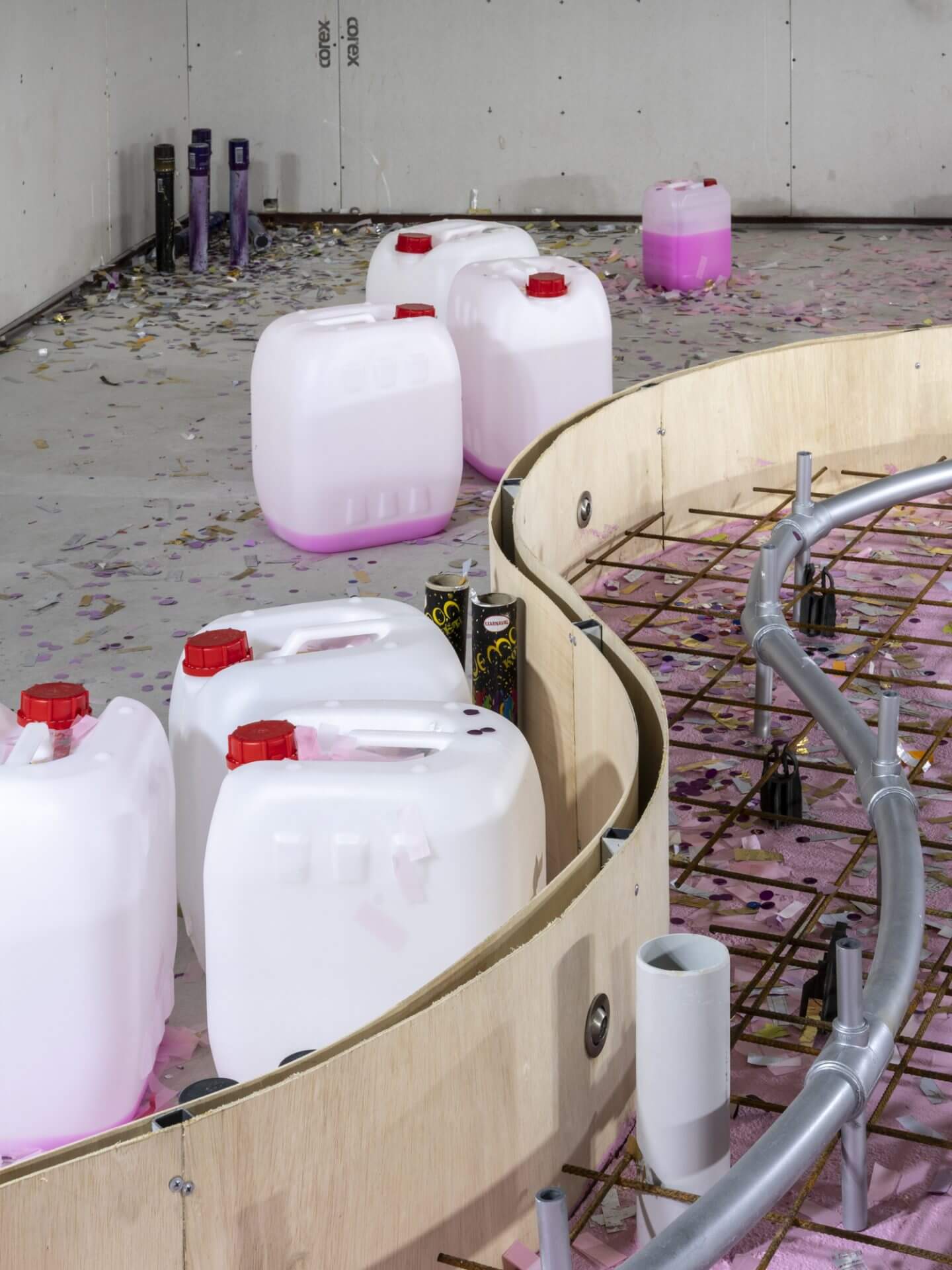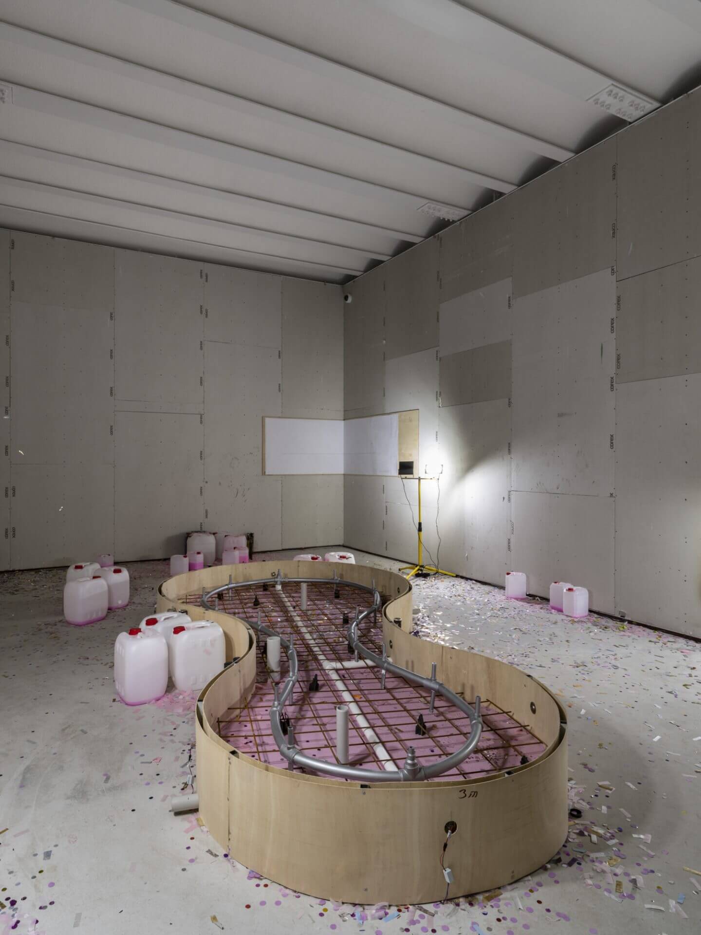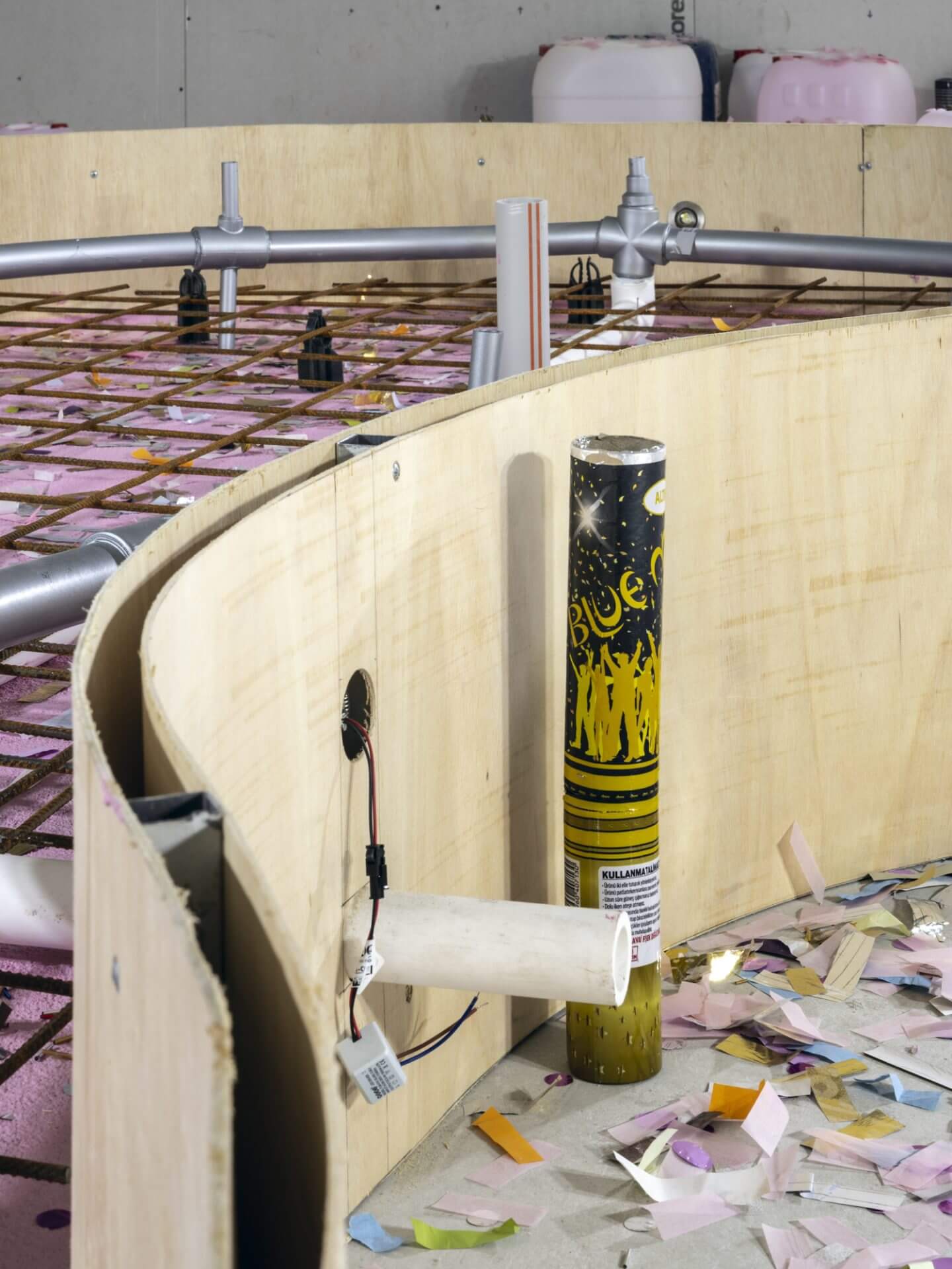 SANATORIUM presents Kerem Ozan Bayraktar’s solo exhibition Check Valve as the inaugural show of its new venue in Karaköy. The exhibition will be on view from May 23 to July 12, 2025. Works spanning three floors unfold within a construction atmosphere shaped by an unfinished fountain and scattered confetti. The exhibition engages with expressive actions such as performing, rising from the ground, launching into the air, and exploding, each approached with different durations, speeds, and intensities. Bayraktar interprets these gestures as repeated vertical impulses that signify productivity and domination, framing them as power performances within hierarchical systems that are not specific to art but operate through self-elevating structures. The artist examines the reproduction of power within technological systems by focusing on technical tools that generate, regulate, obscure, or articulate vectorial movements. Within this framework, he explores automation processes that enable spectacle, using AI-generated works, technical drawings, and surveillance recordings. This aesthetic emphasizes the indifferent nature of mechanical processes and seeks to erode narratives that glorify the creative subject. It foregrounds the techniques that govern action while also aiming to evoke the tensions, dissonances, and intentions that emerge between internal experience and outward expression, and between private and public domains. The exhibition brings together repeated film quotes, footage extracted from urban surveillance systems, and technical parts detached from their original systems. These elements form an aesthetic that resists unity. Rather than completing a singular narrative, the works occupy suspended intervals that contain temporal and spatial ruptures. Bayraktar uses such aesthetic strategies to displace fantasies of coherence, closure, and wholeness that underpin various forms of authority. Check valve: A valve that allows fluid (liquid or gas) to flow in only one direction.