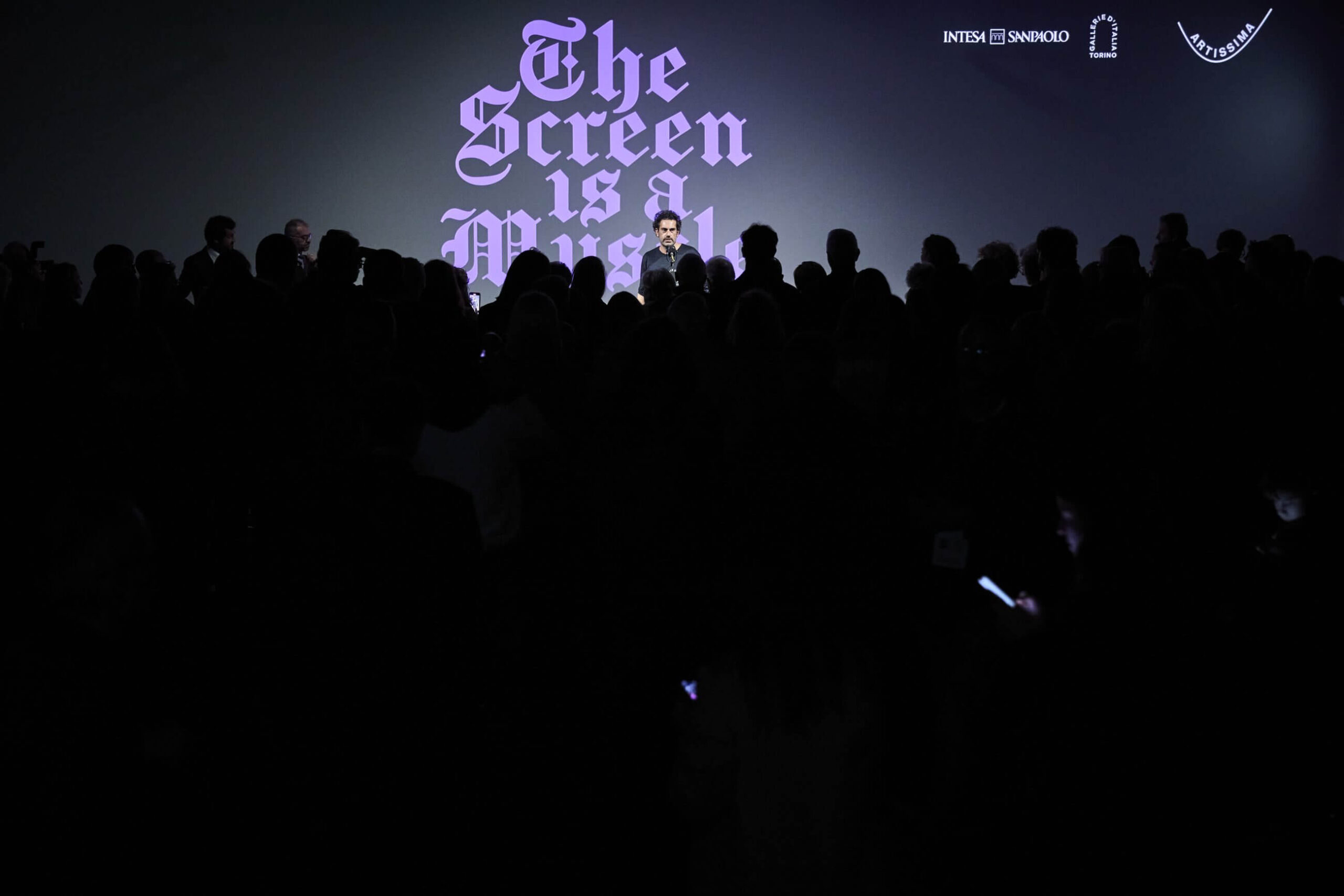 During Artissima, in collaboration with the fair, Gallerie d’Italia opened The Screen is a Muscle, an exhibition curated by Luca Lo Pinto, who brought his transversal approach into the space, conceiving the group show as a choreography with short videos by Bruce Conner, Low Jack & Invernomuto, Tommy Malekoff, Vijay Masharani, Eva & Franco Mattes, Shahryar Nashat, James Richards, SAGG Napoli, Julia Scher and Anastasia Sosunova.