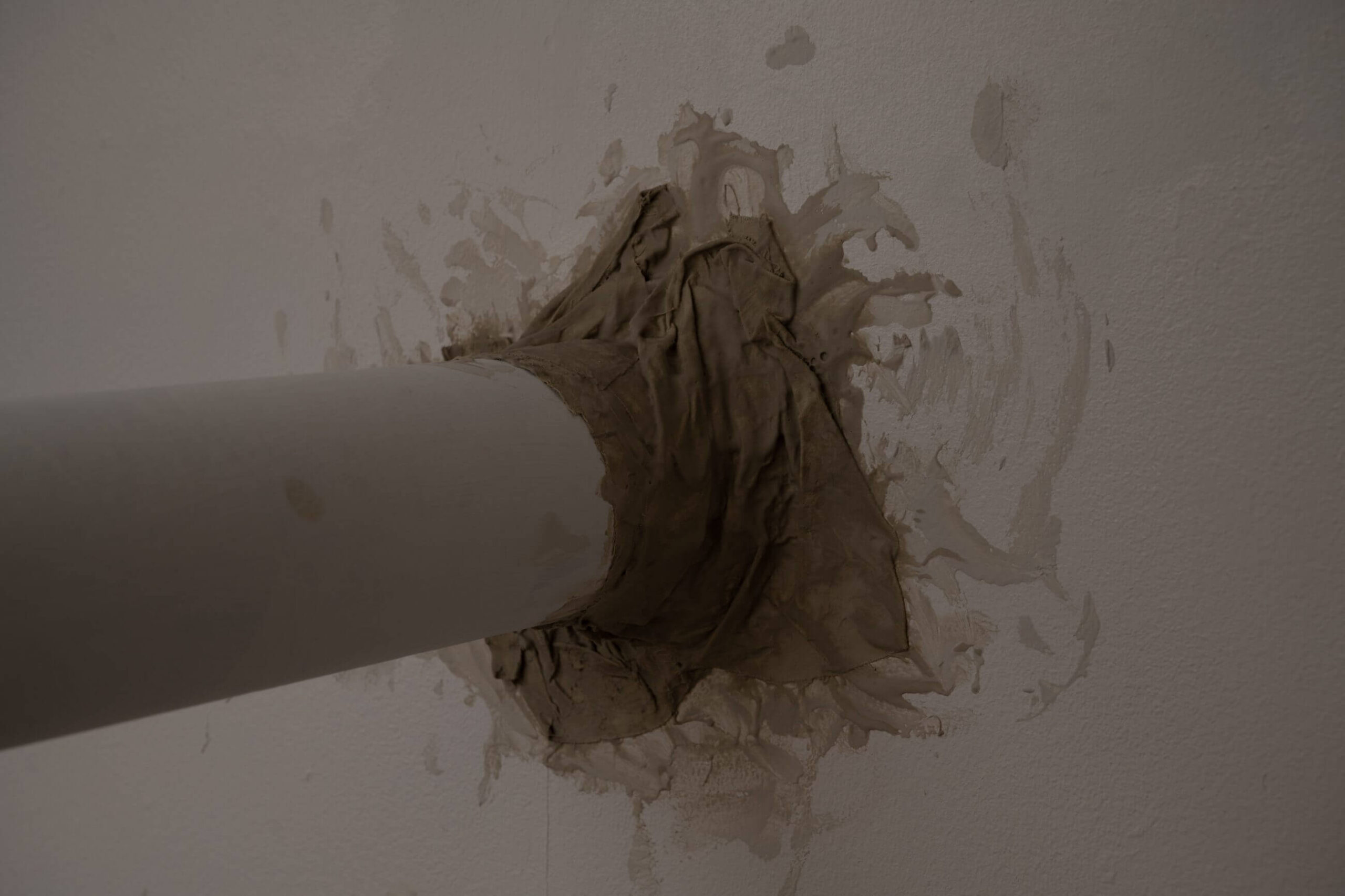 Sulzmann works with humble materials: tubes, plastic, fur, cardboard. And yet what he constructs is anything but humble. This is a parallel architecture, a scenography of disappearance. Each element performs a double function: object and route, obstacle and passage, presence and projection. A white pipe pierces the wall like something out of a drainage system or a hamster maze. Its coarse materiality points to a movement already made, invisible but inscribed in space. This is a show we don’t just see, we overhear it, whispered in the dark.