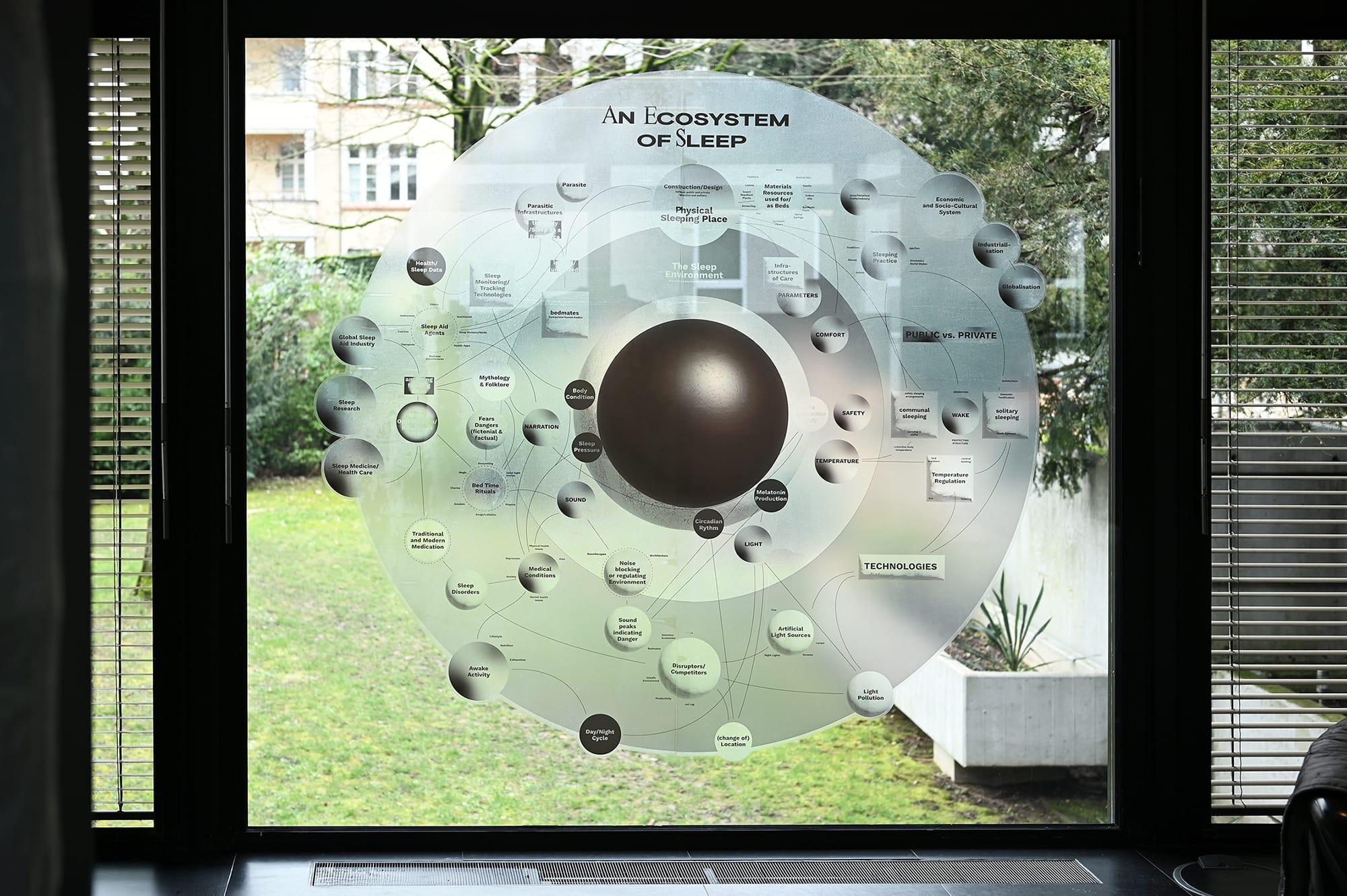 Today, sleep has largely become an isolated, privatized act, increasingly accompanied not by human or more-than-human agents but by technical and intelligent systems. Through tracking technologies, these systems analyze, regulate, and commercialize sleep patterns and habits, rendering this inherently restorative and hidden activity as something “active,” publicly visible, evaluable and exploitable for other infrastructures. In his first major solo exhibition, Body without Narrator, artist and system/game designer Martin Dörr explores sleep as a globally networked infrastructure and resource within late capitalist society.