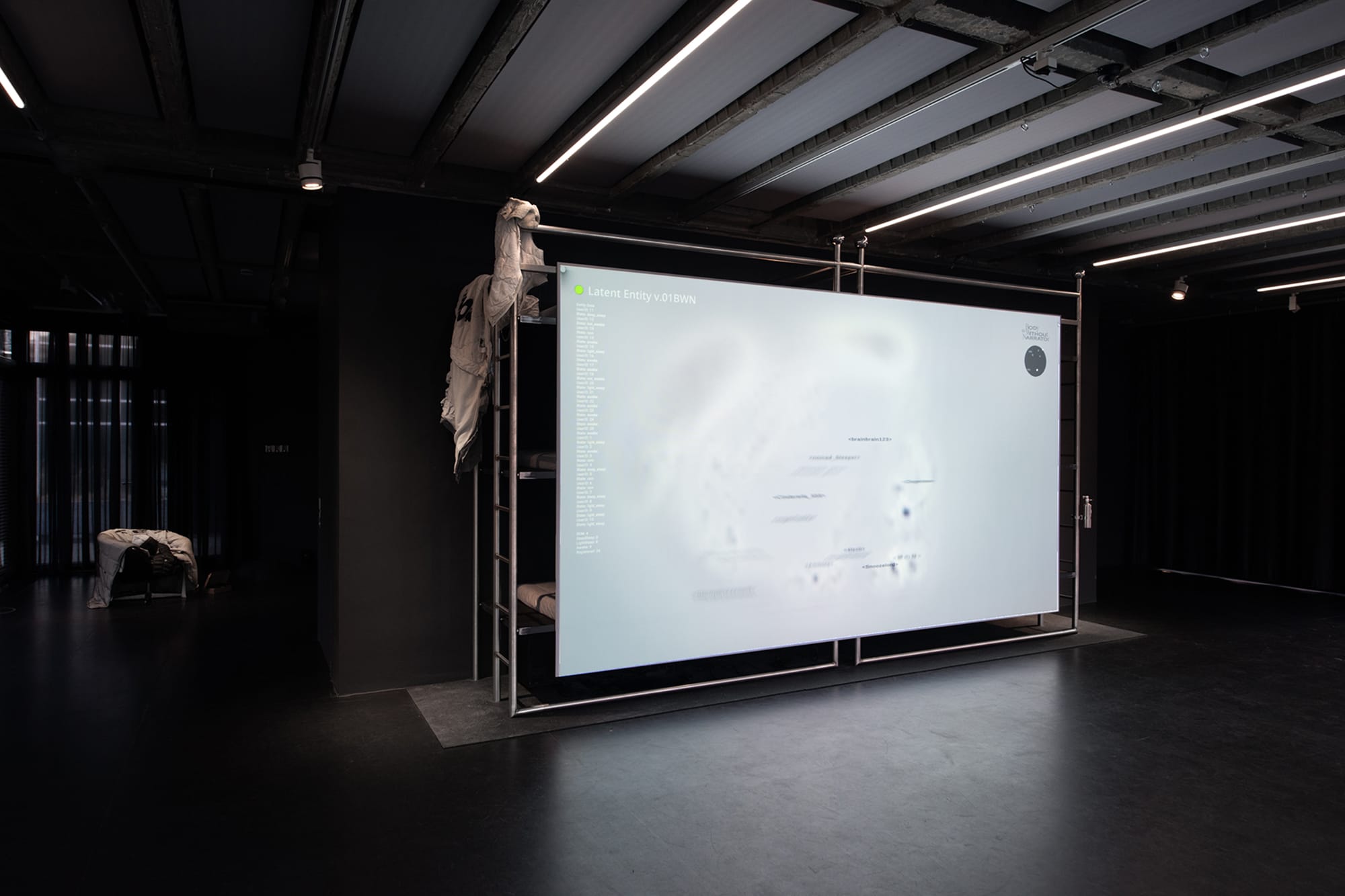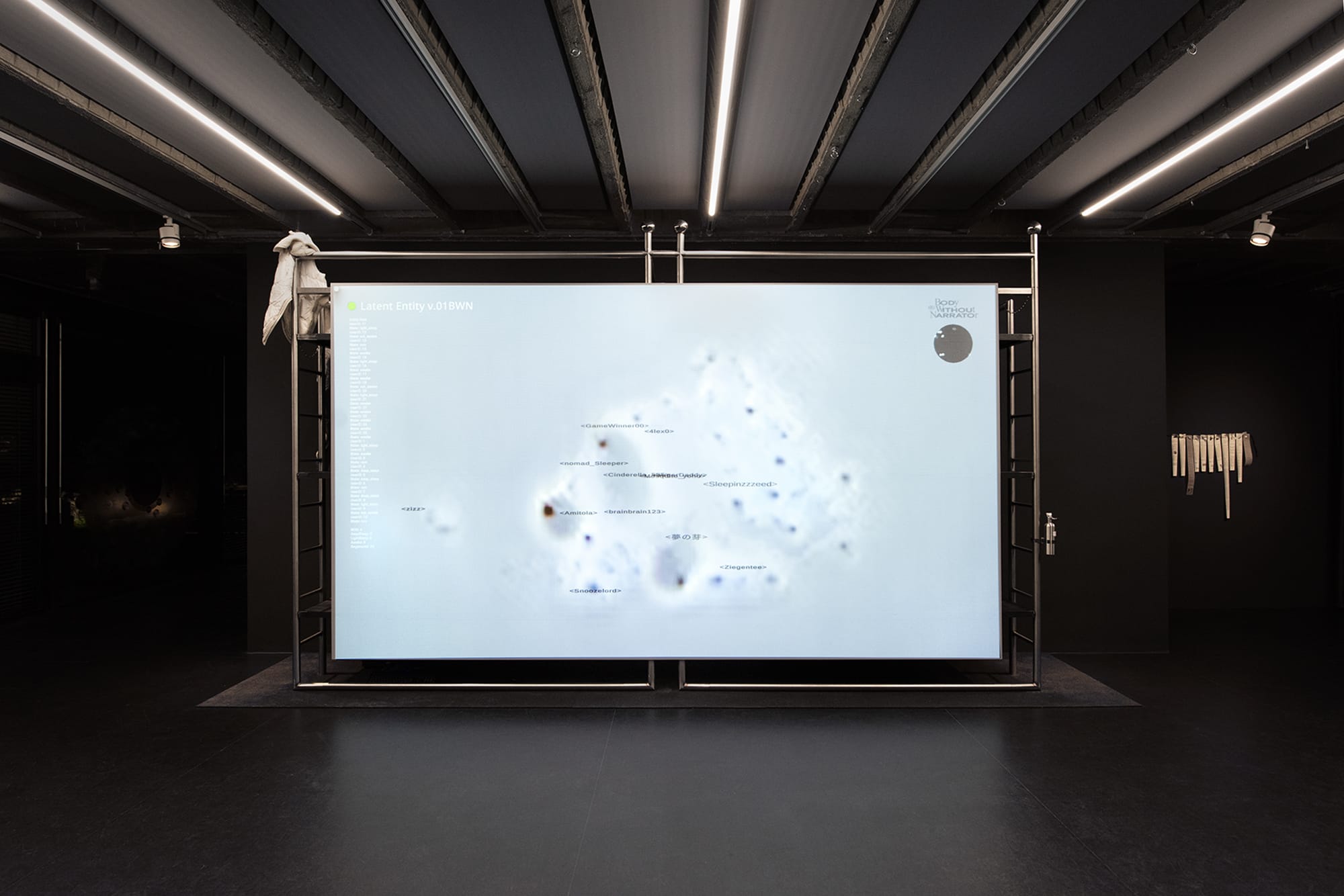 Latent Entity is only temporarily visible and audible throughout the exhibition’s duration. As the participants awaken, the digital character disappears and enters a dormant state itself. In doing so, it withdraws from external control and resists the common strategies of media attention economies—an alternative to traditional game mechanics, where avatars are usually controlled through active user participation. Apps, tracking devices, and other sleep-enhancing tools from the ever-growing global sleep-aid industry are repurposed to generate a subversive parasite—Latent Entity—which exploits these capitalist structures to sustain itself as a “useless” yet active character. This systemic experiment intertwines capital, control, and sleep in an inseparable web, turning the act of collective sleep into a transactional form of resistance.