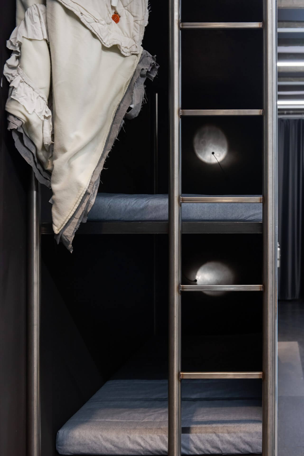 At the heart of the installation stood the Sleep Station: a kind of oversized console, a hybrid between sculpture, altar, and server. It housed six sleep cabins on its back and a large display of the entity’s real-time behaviour.