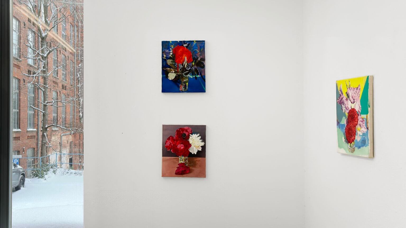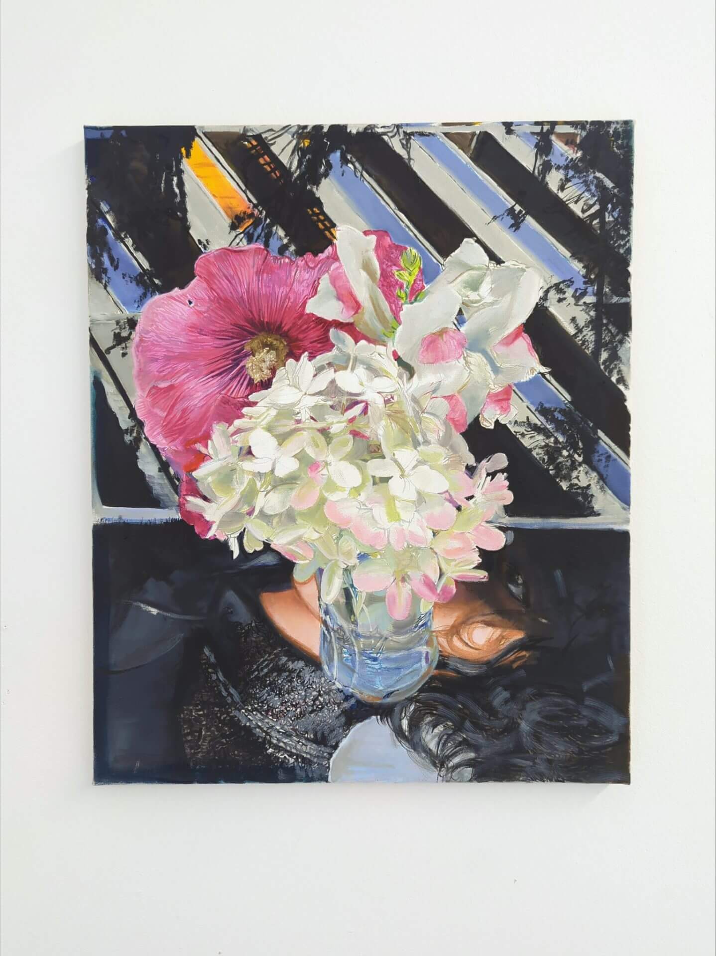 The atmosphere at Suburbia Contemporary Leipzig Spinnerei is measured and lucid. Light falls evenly, without drama, allowing the works to breathe. Visitors move quietly, almost instinctively adjusting their pace to the calm that emanates from the canvases. The space does not impose a rigid path; instead, it encourages a gradual discovery, a drifting from floral still lifes to human and animal figures, what Galle calls, in essence, the “humanimal.”