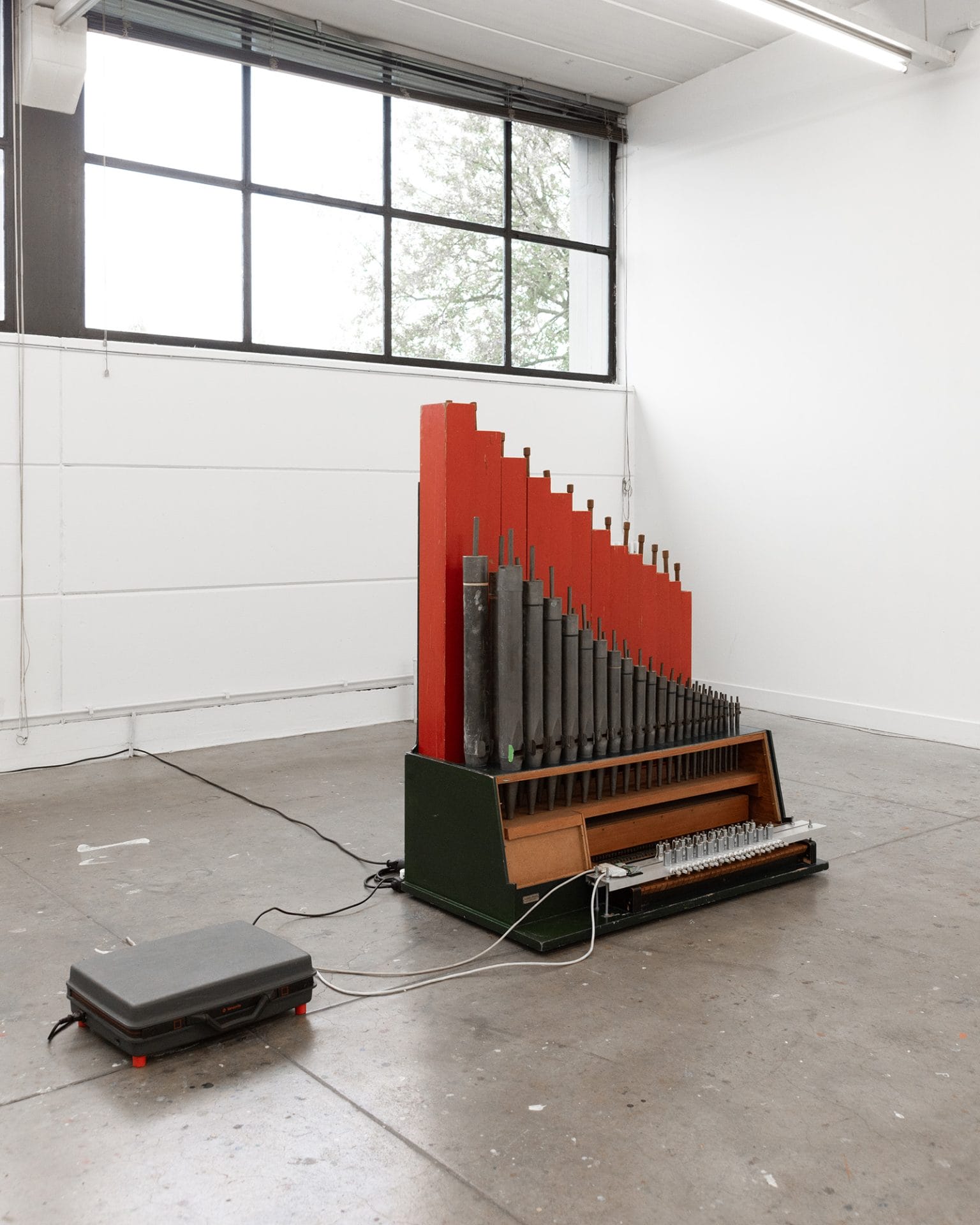 Human Organ Concerto is an interactive audio installation that invites visitors to create a collective sound composition through wearable devices. Positioned at the exhibition entrance, the devices come with simple instructions for use. Once worn, they register each visitor’s breathing pattern and translate it into a sound composition, played by an organ in the exhibition space. - Davide Zulli, Landscape Reinforcement #1, 2024