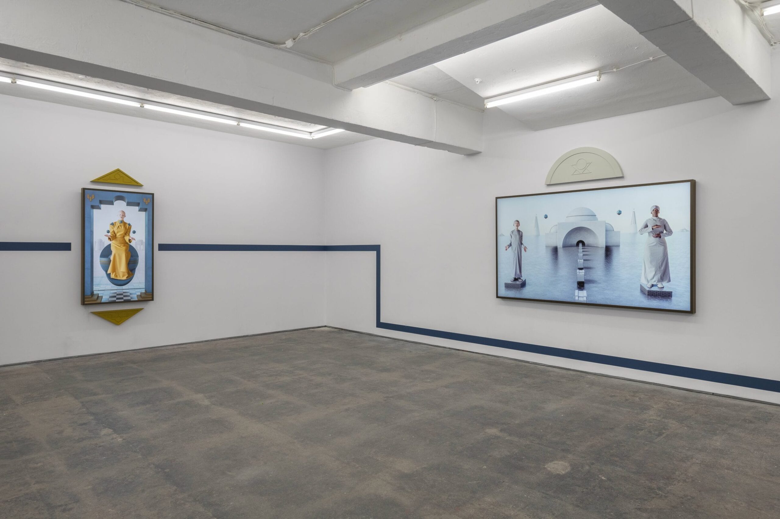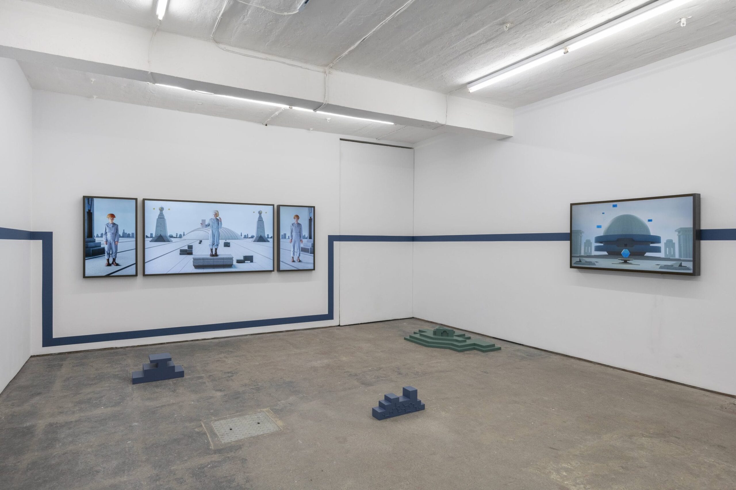 Twelve videos populate the gallery like glimpses of a future distilled into static architectures and equally motionless figures. Clad in monastic robes, draped in neutral fabrics, their movements are measured, deliberate, almost ceremonial. They do not work, they do not struggle, they do not desire. Every gesture is precise, millimetric, as if executing a preordained sequence dictated by some higher intelligence. There is no sweat here, no urgency. If this is an optimized future, where has humanity gone?