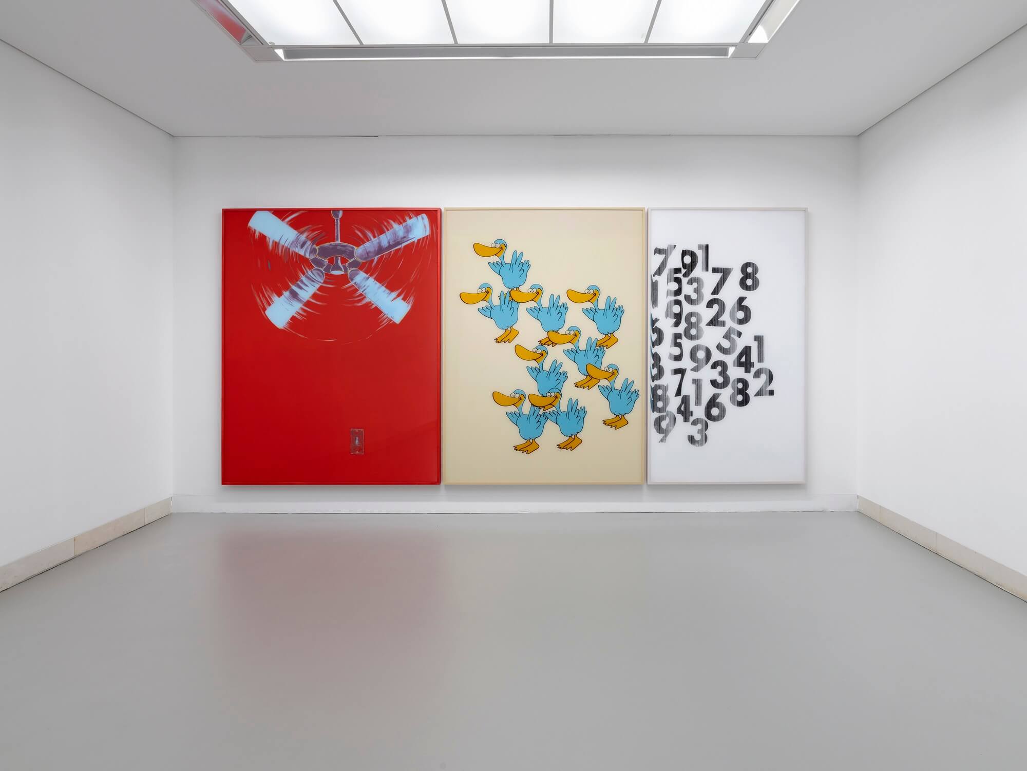 Alex Da Corte orchestrates visual chaos with unsettling grace. His triptych reads like shards of pop culture and art history fused into one plane, not layered, but interwoven. Joan Brown and Sesame Street, irony and grief, myth and television. Da Corte doesn’t build collages; he builds visual synapses.
