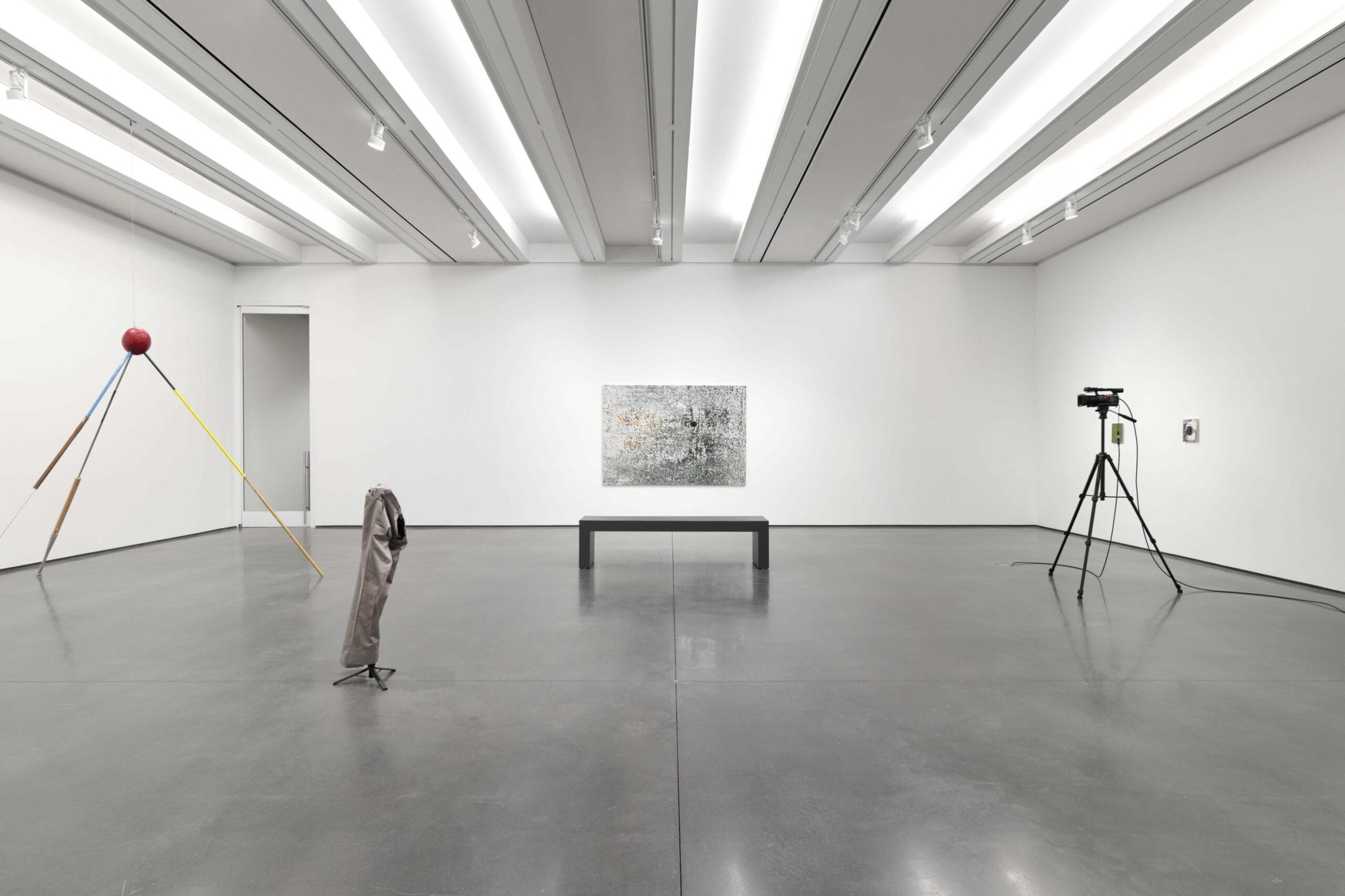 The exhibition unfolds as an immersive assemblage, merging infrastructures typical of live events, an amplified stage fitted with contact microphones, spotlights, cameras, and screens, with new works including paintings, sculptures, and even a growing potato rhizome. Marsalis creates a porous arena where the gallery space transforms into a stage, and the audience simultaneously becomes spectator, protagonist, and audiovisual material. The atmosphere hovers in a state of constant suspension, oscillating between the contemplative and the performative.