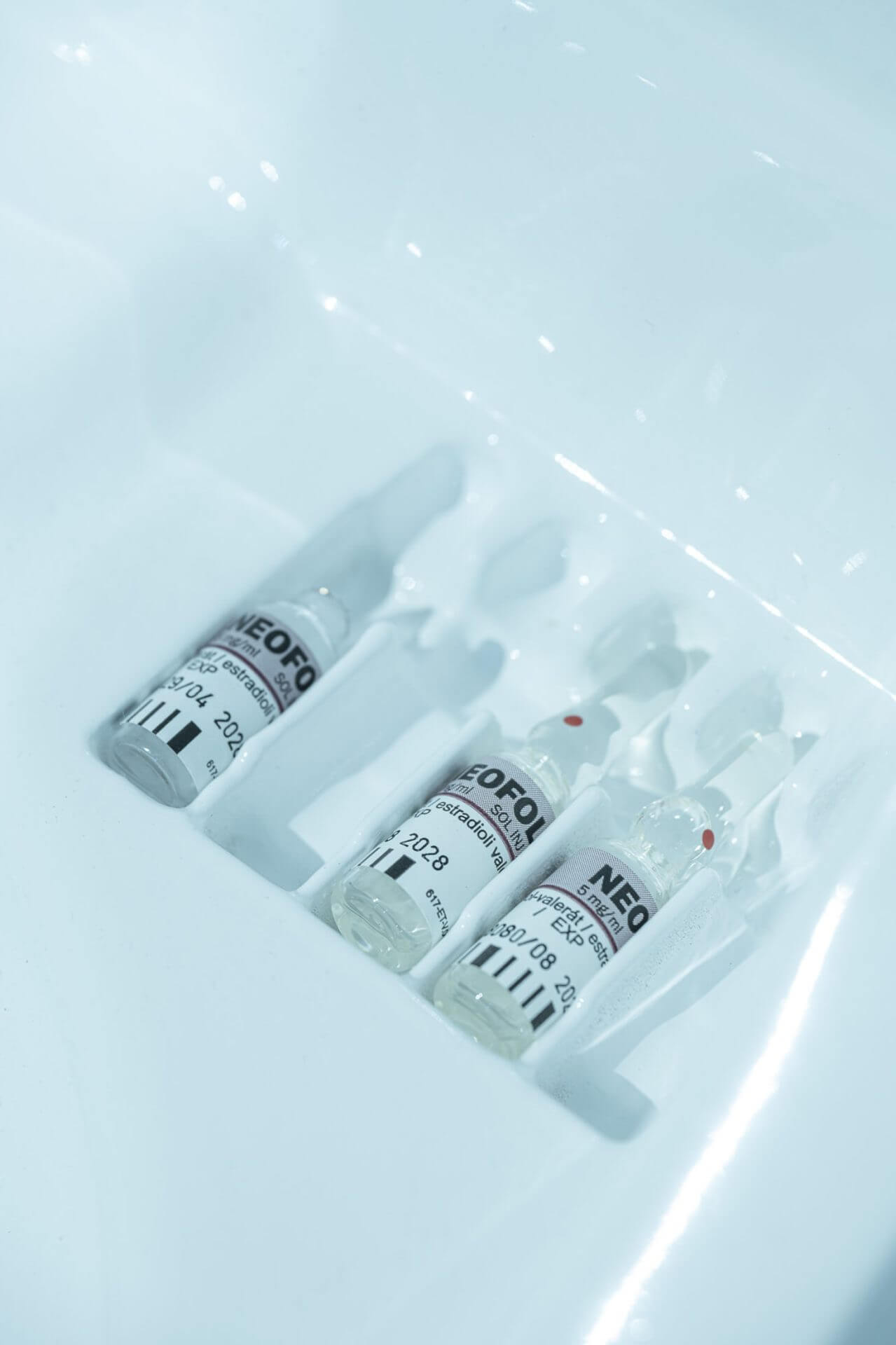 What is a bathroom, really? A place for cleansing or exposure? A confessional or a lab? Begone Estrone, the joint exhibition by Paula Gogola and Natália Sýkorová at Bratislava’s Medium Gallery, opens like a question suspended in steam: what if intimacy was an industrial landscape? What if bodily care revealed itself as a surgical operation on the language of power?
