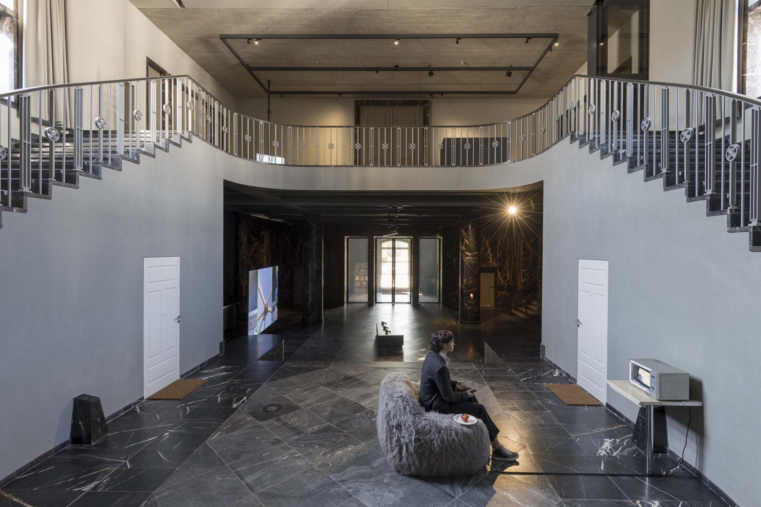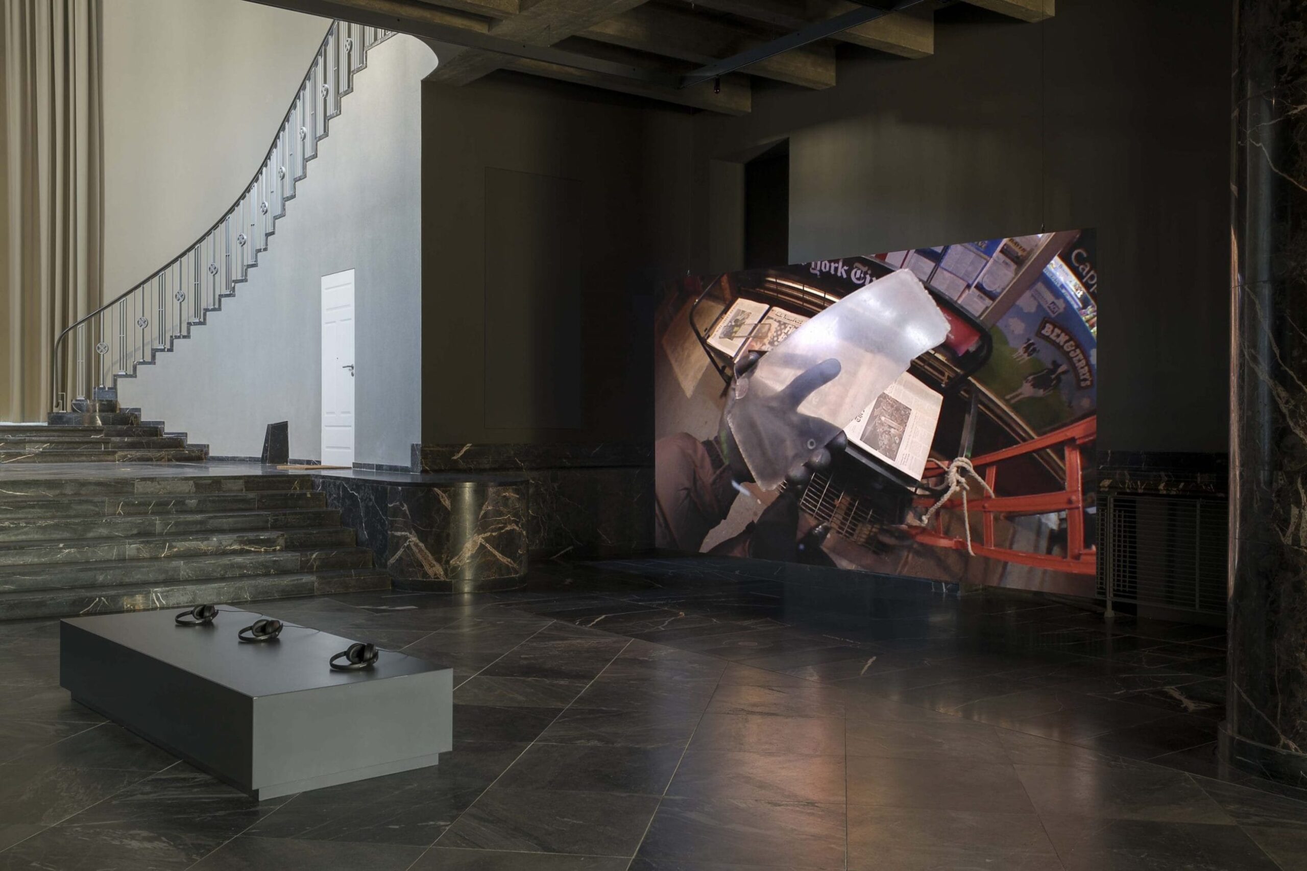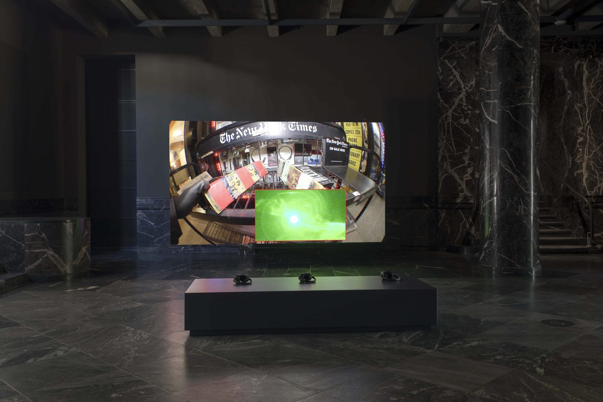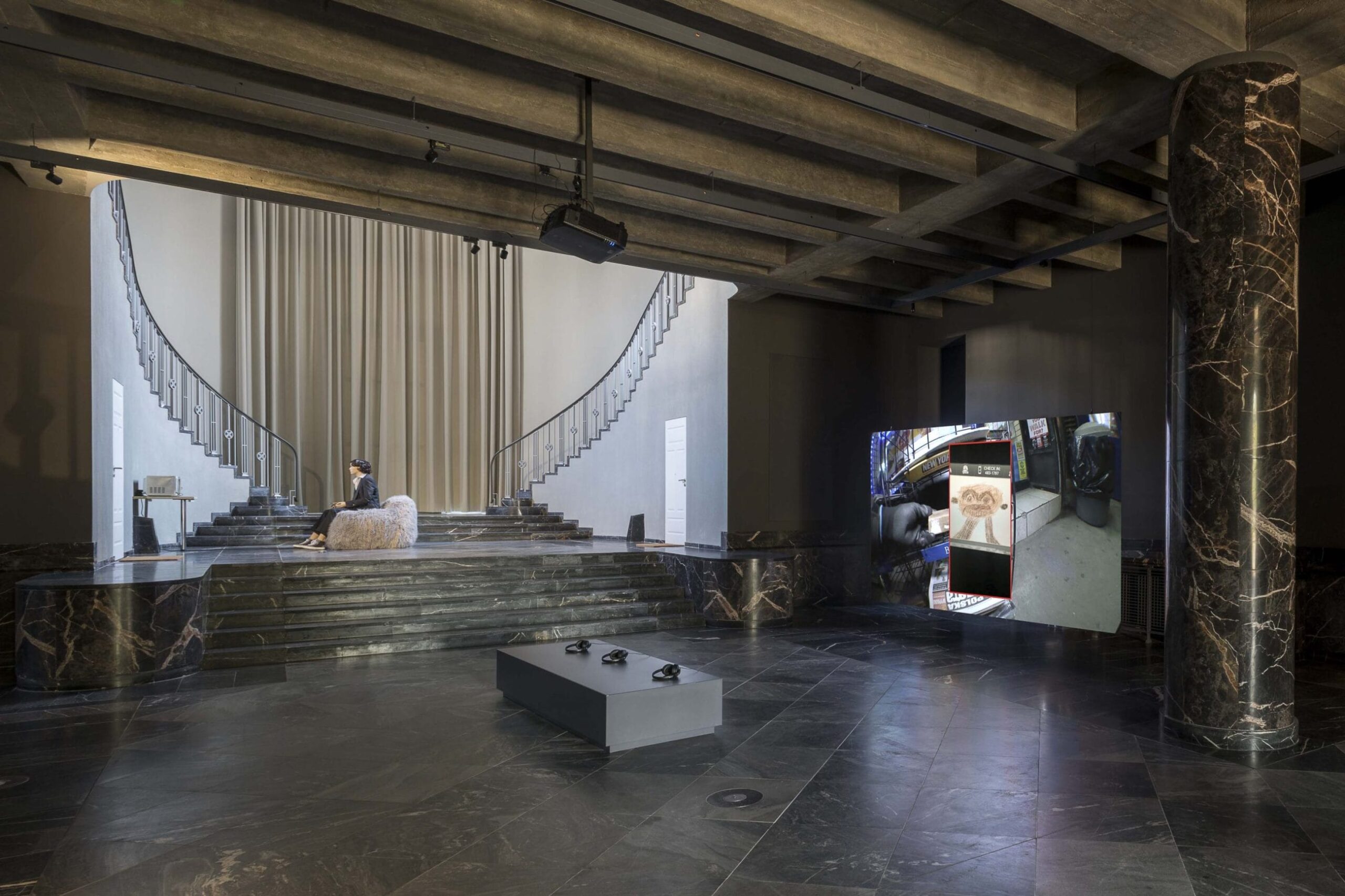 The setting is anything but neutral. Fluentum’s sprawling halls, housed in a repurposed Nazi-era military complex, carry the weight of historical surveillance and control, turning the building itself into a charged interlocutor. The artworks don’t merely occupy the space; they disrupt and repurpose it, folding its past into present-day concerns about visibility, power, and mediation. There’s no clear route through the exhibition: instead, visitors drift from dim corridors to flickering rooms, caught in a syncopated rhythm of screens, shadows, and synthetic sound. Each space feels both intimate and unstable, like stumbling into someone’s digital diary mid-upload.