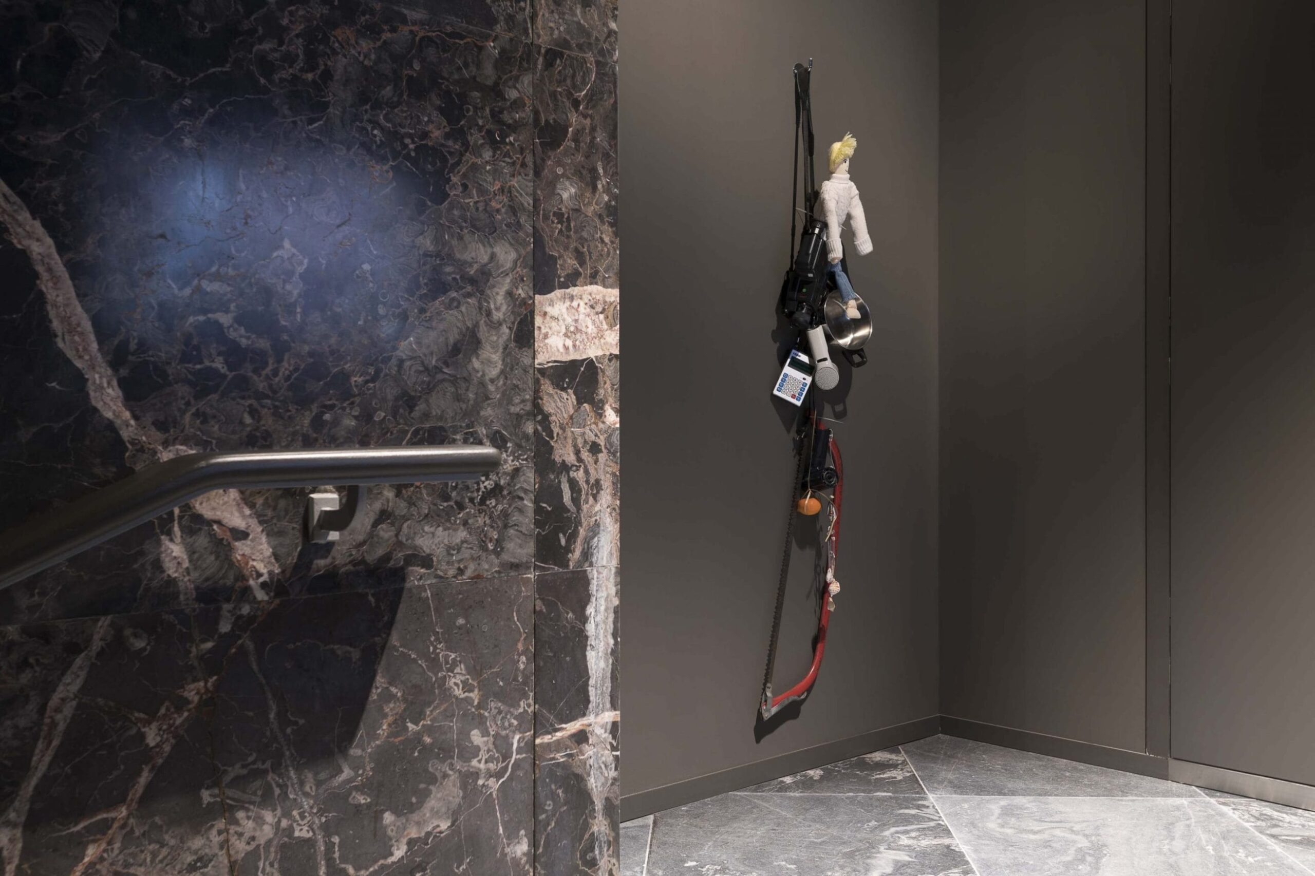 Gestures abound: hands grasping phones, swiping, zooming, trembling slightly. These are not the idealized hands of classic sculpture, but real ones, fidgeting, flawed, human. The body is everywhere, not in full view, but as a presence that lingers: a reflection in glass, a breath picked up by a microphone, a fingerprint smudged on a screen. The viewer, too, becomes implicated. You’re not just observing; you’re caught in the circuitry, your gaze folded into the feedback loop.