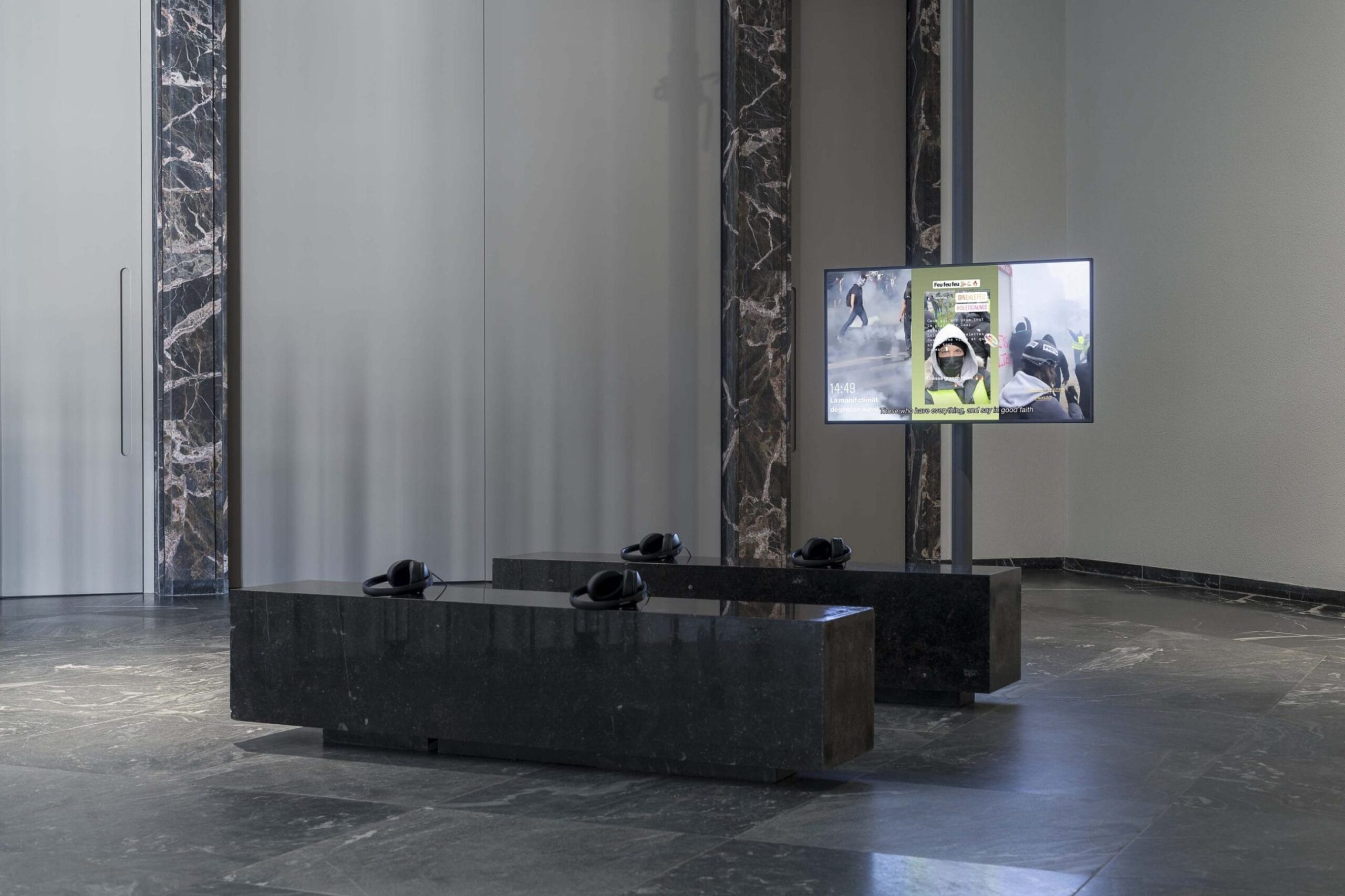 What’s left of lived experience when it’s constantly filtered, fragmented, and reframed through screens? Perhaps only an echo, a digital residue flickering between apps, feeds, and lenses, or something more elusive: a faint yet persistent awareness that everything we do, no matter how mundane or intimate, might become part of a public archive. Entering Rushes, the group exhibition at Fluentum in Berlin, is like catching your reflection in a turned-off monitor: unexpected, a little disorienting, and strangely revealing. The show doesn’t prescribe conclusions; instead, it immerses the viewer in that liminal space where reality is both recorded and performed, consumed and contested, private and deeply politicized.