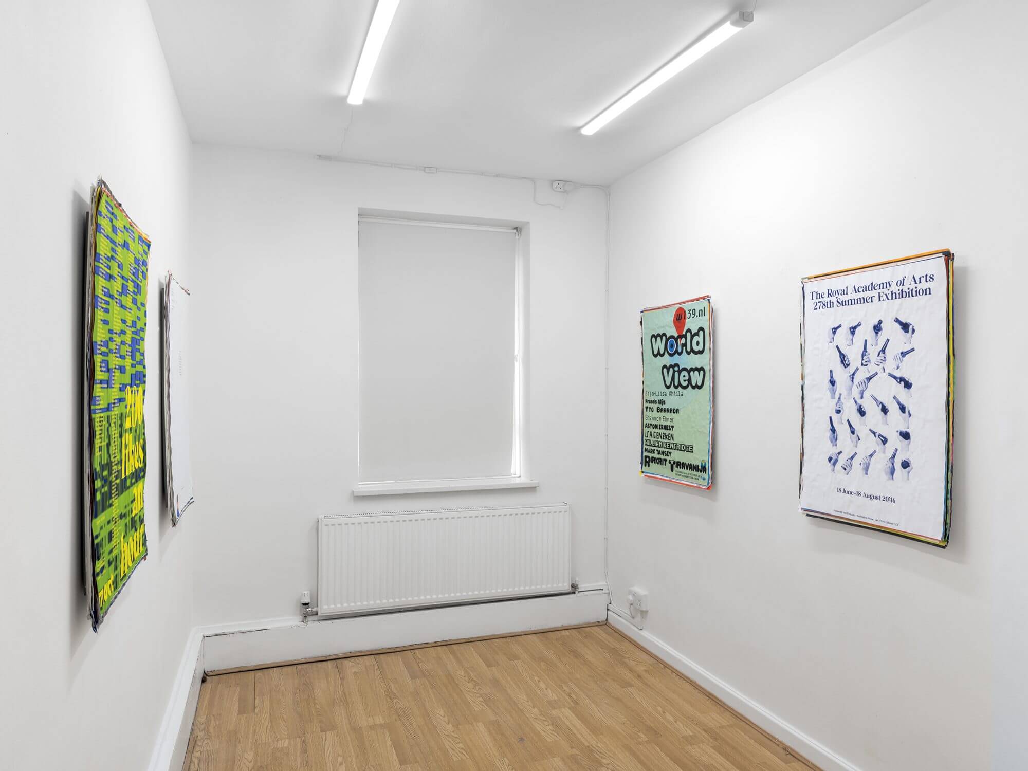 Each work in Phantom Ambition is a speculative fiction, a poster designed with institutional precision, imagining exhibitions that never were, but perhaps could be. Venues are both real and invented, dates stretch forwards and backwards. Some posters commemorate ghost events in the past, others hint at futures yet to materialize. The typography, layout, and curatorial tone mimic the specific aesthetics of each supposed institution. This series, initially presented in Spain, finds its British echo here, grounded yet disoriented.