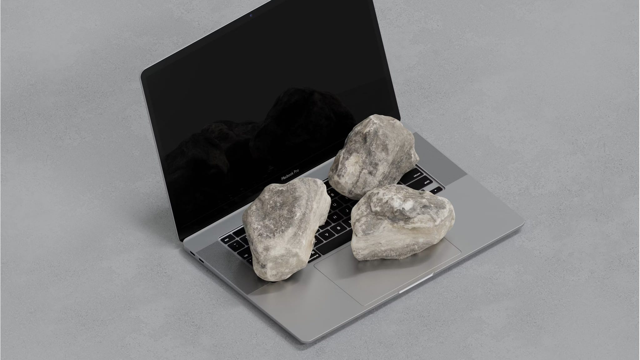 These pairings describe a part of me. ‘Pressure’ for example includes several meanings. One of them is the representation of the feeling of failure after great success. A long writer-block period where each new work will never be as good as the successful one. The other representation is more logical and plays on the juxtaposition of the materials I use, the stones are the ones I used to build the walls outside my house and the computer is the tool I work with.