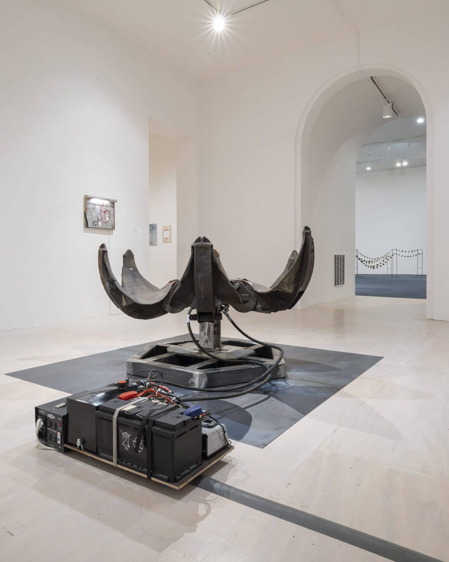 The exhibition space is expansive and layered, compelling us to slow down. Nothing is neutral. The lighting doesn’t soothe; the layout resists any smooth traversal. The works emerge like shipwrecks, or signals. Something speaks. Something holds us. Each room pulls us deeper into an inquiry that doesn’t offer resolution but scatters connections, between materials, gestures, and marginal forms of life.