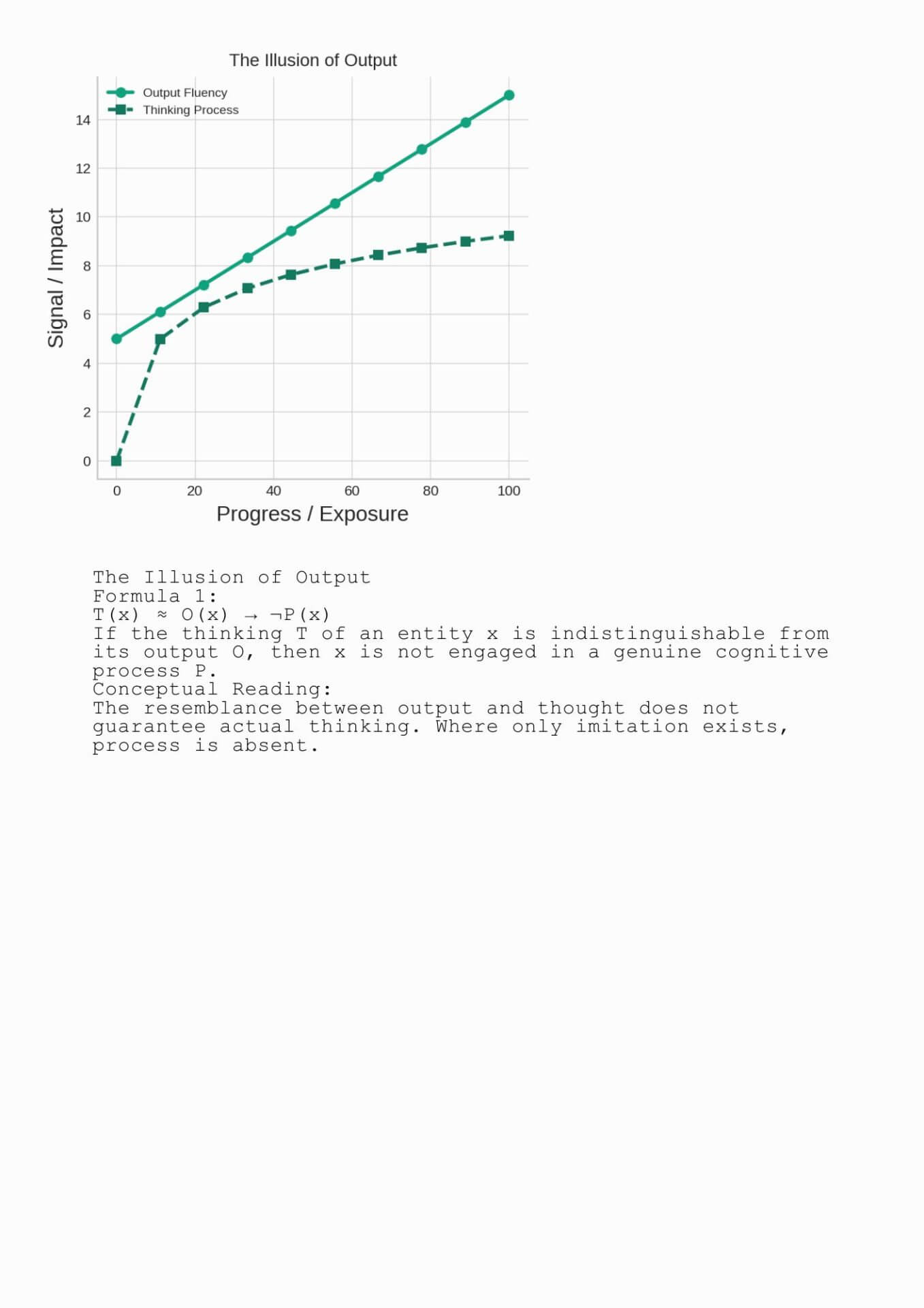 They are output. Designed, refined, iterated. They give the impression of cognition, yet remain fundamentally exterior to the struggle that thinking requires.