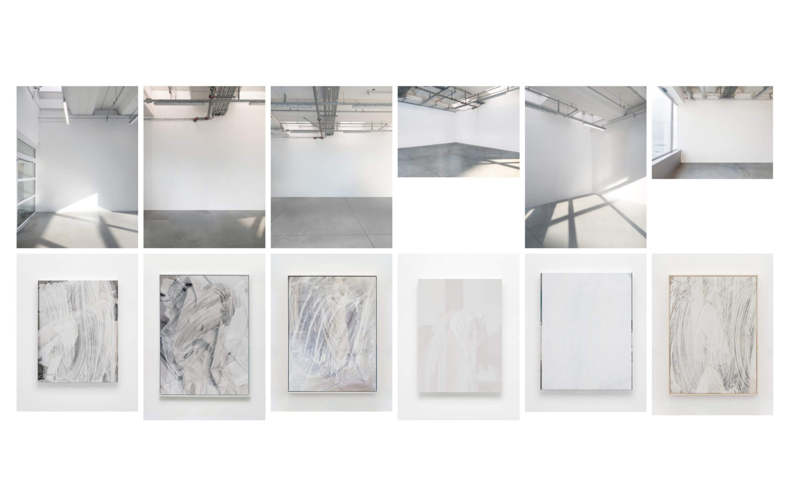 In the documentation photos of Liminal Figures, the paintings appear almost as an afterthought. Looking at the sequence of images, you get the sense that the exhibition is either yet to be installed, or paradoxically, already dismantled.