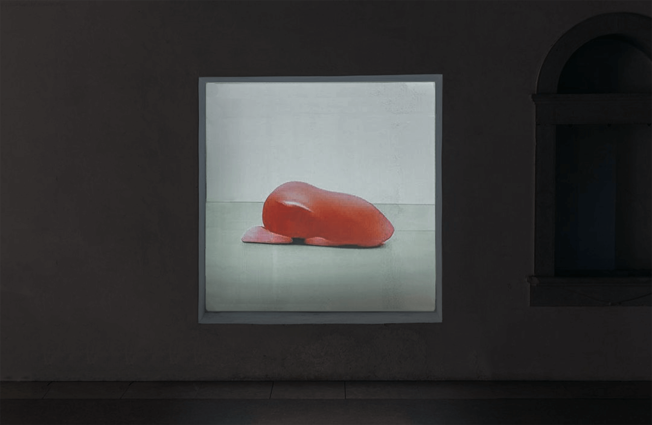 The problem with showing the work in an offline context was, in a way, how to render visible, or at least evoke, all the complexity that was fully present through its online fruition. With the video installation, I wanted to recreate the same sense of fixity that a still image of an artwork retains, along with the impression that something about that image was in a state of constant change, inevitably escaping the viewer. This is what led to the choice of an extremely slow video, a constant transition from one sculpture to the next, so slow that it was barely perceptible to someone looking at it directly, yet enough for the sculpture to have completely changed by the time the viewers walk past it again at the end of their visit. In a sense, it replicates the same relationship that generated images have with the latent space: while we perceive them as something fixed and finite, between each of them lies a complex, multidimensional space; a space where all possible variations and combinations are contained and organised, but that remains ultimately inaccessible to us.