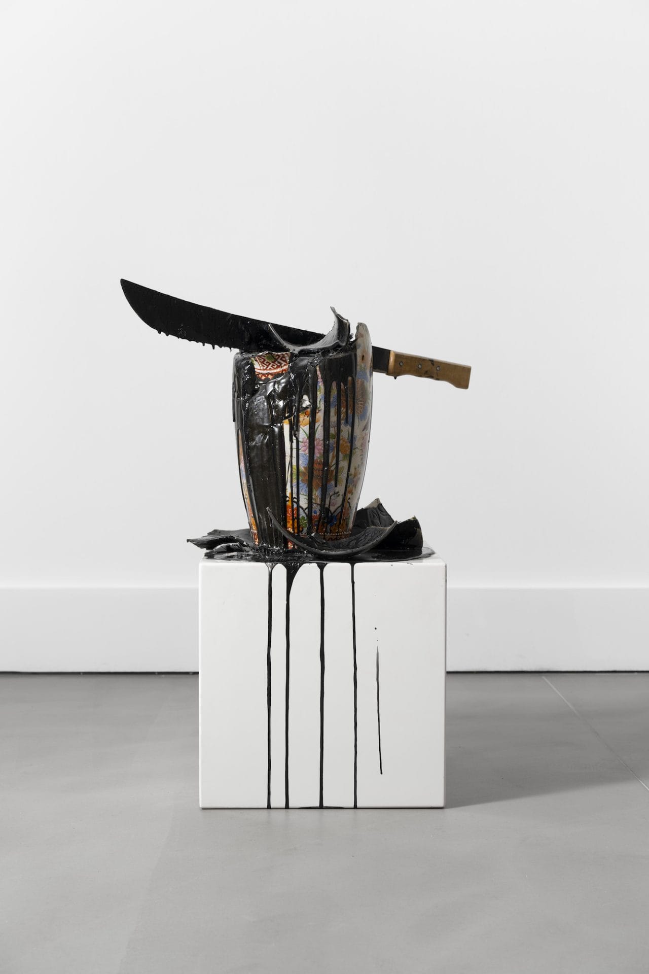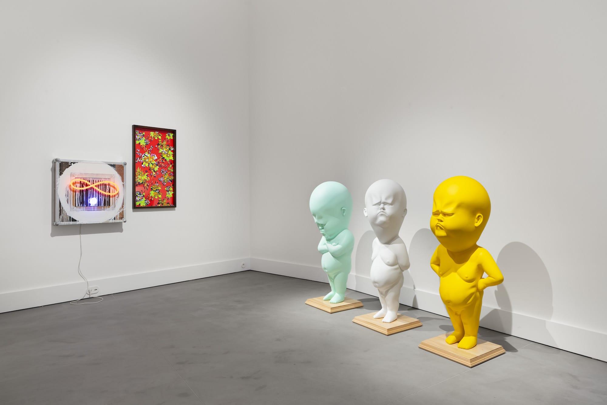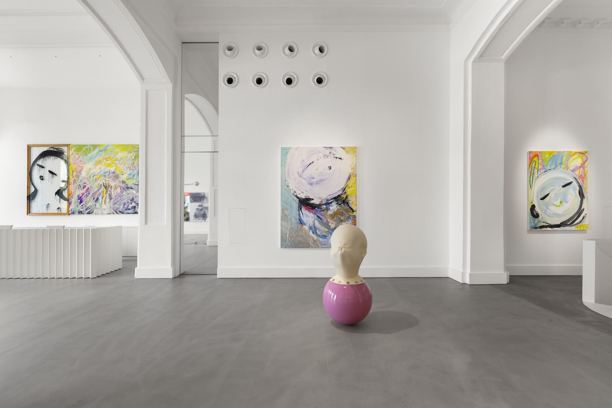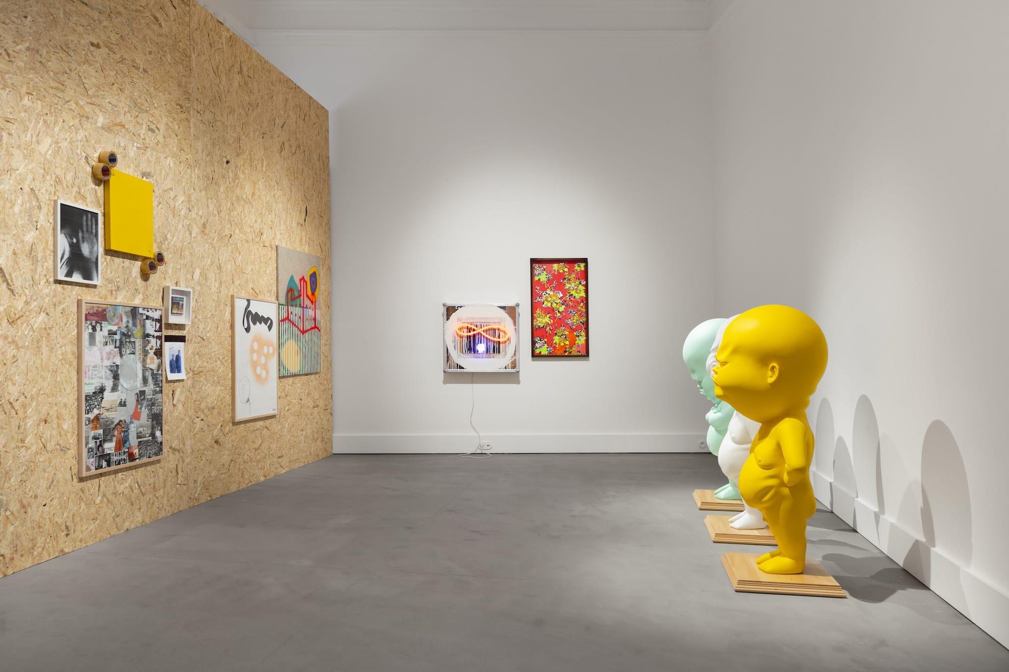 The selection of works creates a narrative across Frešo’s oeuvre, reflecting his artistic development and evolution. This retrospective exhibition offers a chance to explore the complexity of Frešo’s artistic world across various media and approaches, including abstraction, portraiture, sculpture, and objects, spanning from the 1980s to the present. Viktor Frešo programmatically constructs a hybrid environment filled with diverse objects while maintaining his distinct coordinates and references. He preserves a characteristic vocabulary of visual elements, drawing on autobiographical themes, self-presentation, and a form of artistic “ego art therapy” dominated by gesture. His work references Dadaist spontaneity, the influence of ready-made art, conceptualism, minimalism, elements of punk provocation, and fragments of pop culture. A distinctive feature of his work is the tension he creates between grandiose, egoistic art and quieter paintings or humble found objects from his family history. The piece Neon Viki (2024) is a neon self-portrait, in which Frešo introduces a new context by incorporating his grandfather’s suitcase filled with tape recorders he collected, alongside vases from his grandmother’s Modran ceramics collection. The exhibition will also include an intriguing piece from the Vases series, titled Vase 05 (2016), where the artist disrupts original cultural references and reinterprets them in his own style, giving them new meaning. The work Chandelier (2013) ideologically reflects the artist’s childhood, influenced by a musical environment that shaped his sensibilities. Frešo’s deep connection with the world of music is evident in works like Sound Core 02 (2017), where he plays with the meaning and functionality of musical objects. His ability to reveal dark, sentimental, and humorous aspects makes his works engaging to the viewer, providing insight into his inner motivations, memories, and desires. For instance, the piece Roly Poli explores the ambivalence of arrival and departure, creating a play on emotions that can be unsettling yet visually captivating. Frešo is known for using striking and catchy slogans, often aiming to provoke an immediate reaction. His creative acts are unmistakable gestures designed to engage and inspire the viewer.